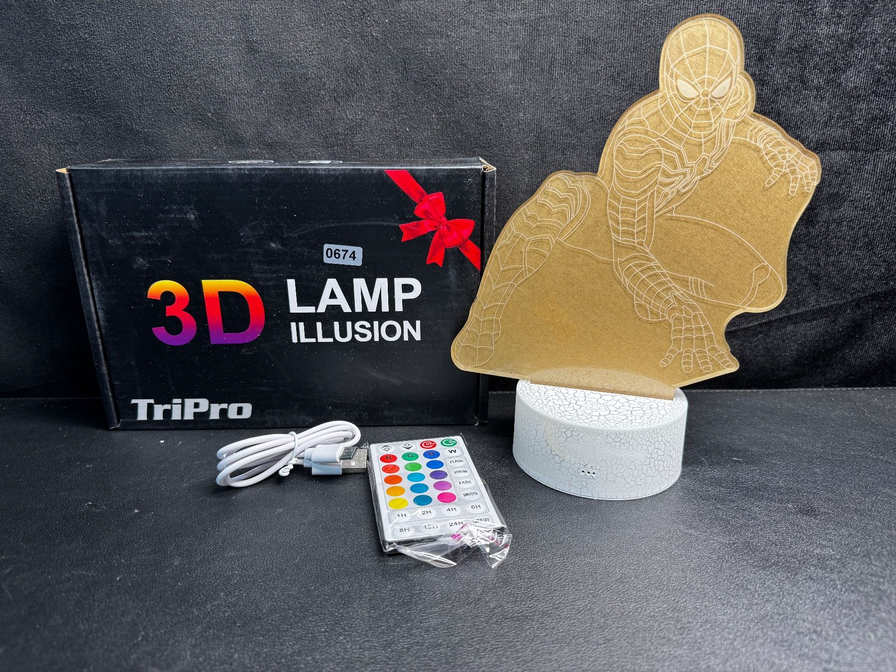 Spiderman 3D Illusion Lamp with Changeable Colours - Includes Base Remote and Display - New