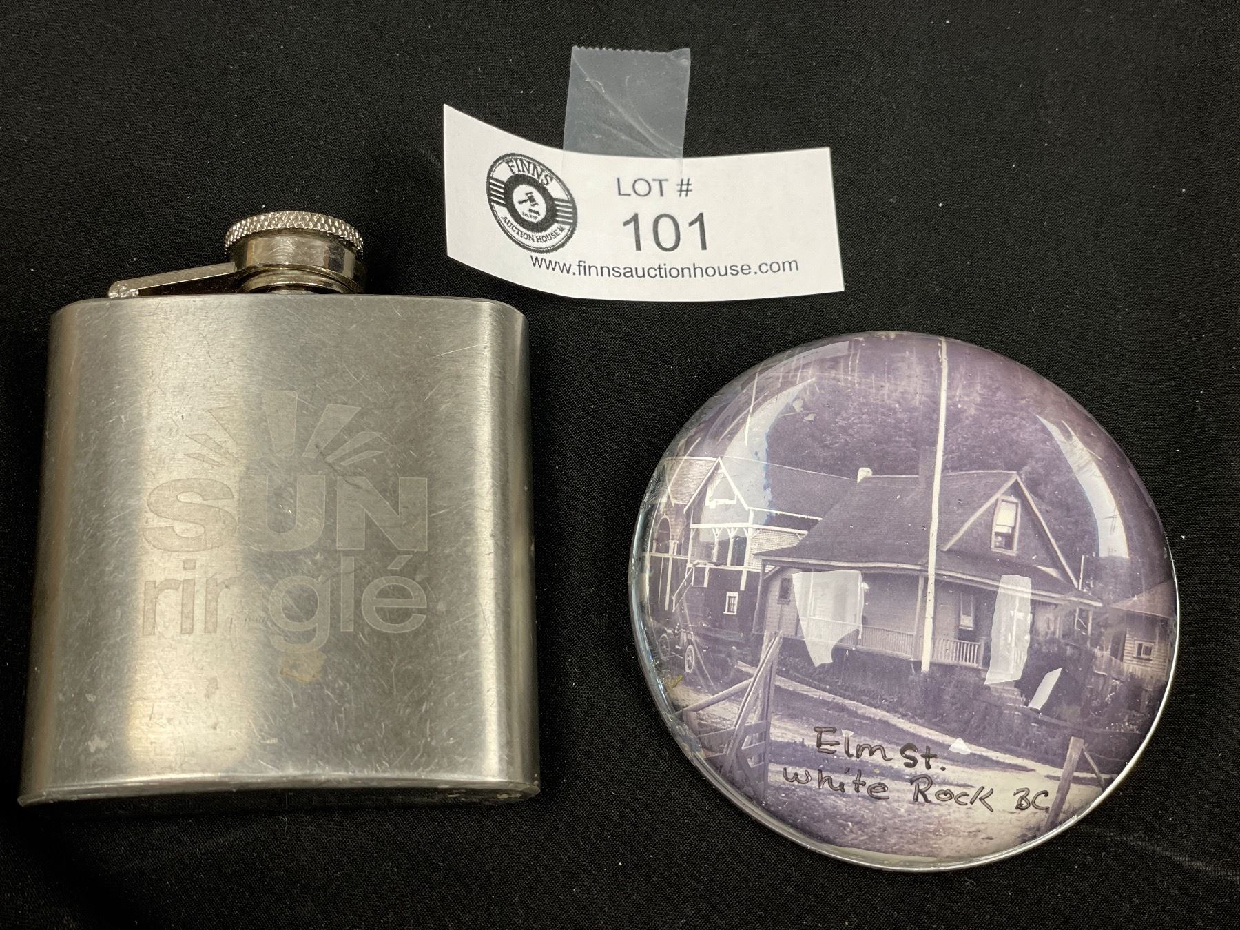 Stainless Steel 3oz Flask Plus Vintage Glass Paper Weight Elm Street White Rock BC