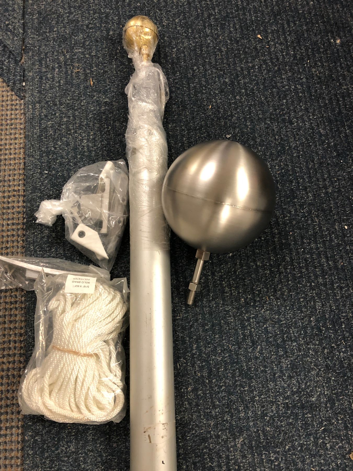 Stainless Steel ball with bolt, hardware and braided rope