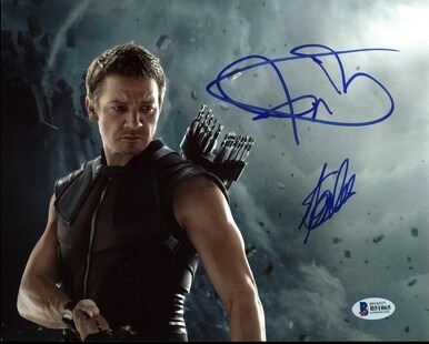 This is a Authentic Signed 8X10 Photo that has been Personally Signed & Autographed by Stan Lee & Jeremy Renner. This item is 100% Authentic to include a Certificate of Authenticity (COA) / hologram by Beckett Authentication Services