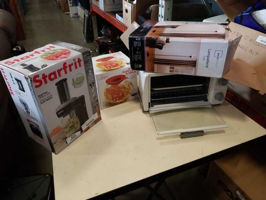 Starfrit spiralizer, popcorn popper, toaster oven and lamp