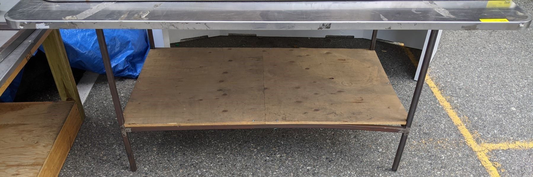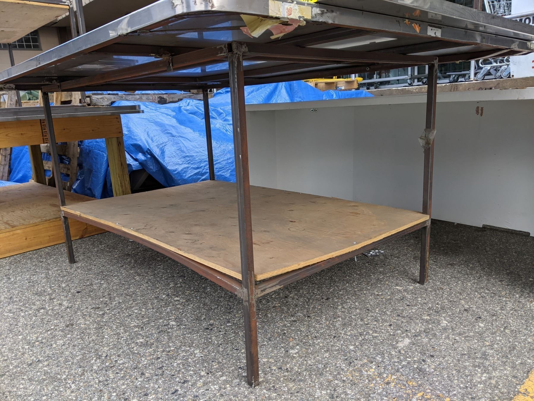 Steel framed table w/ approx. 6 1/2 ft by 5ft stainless steel top from the popular sci-fi tv series