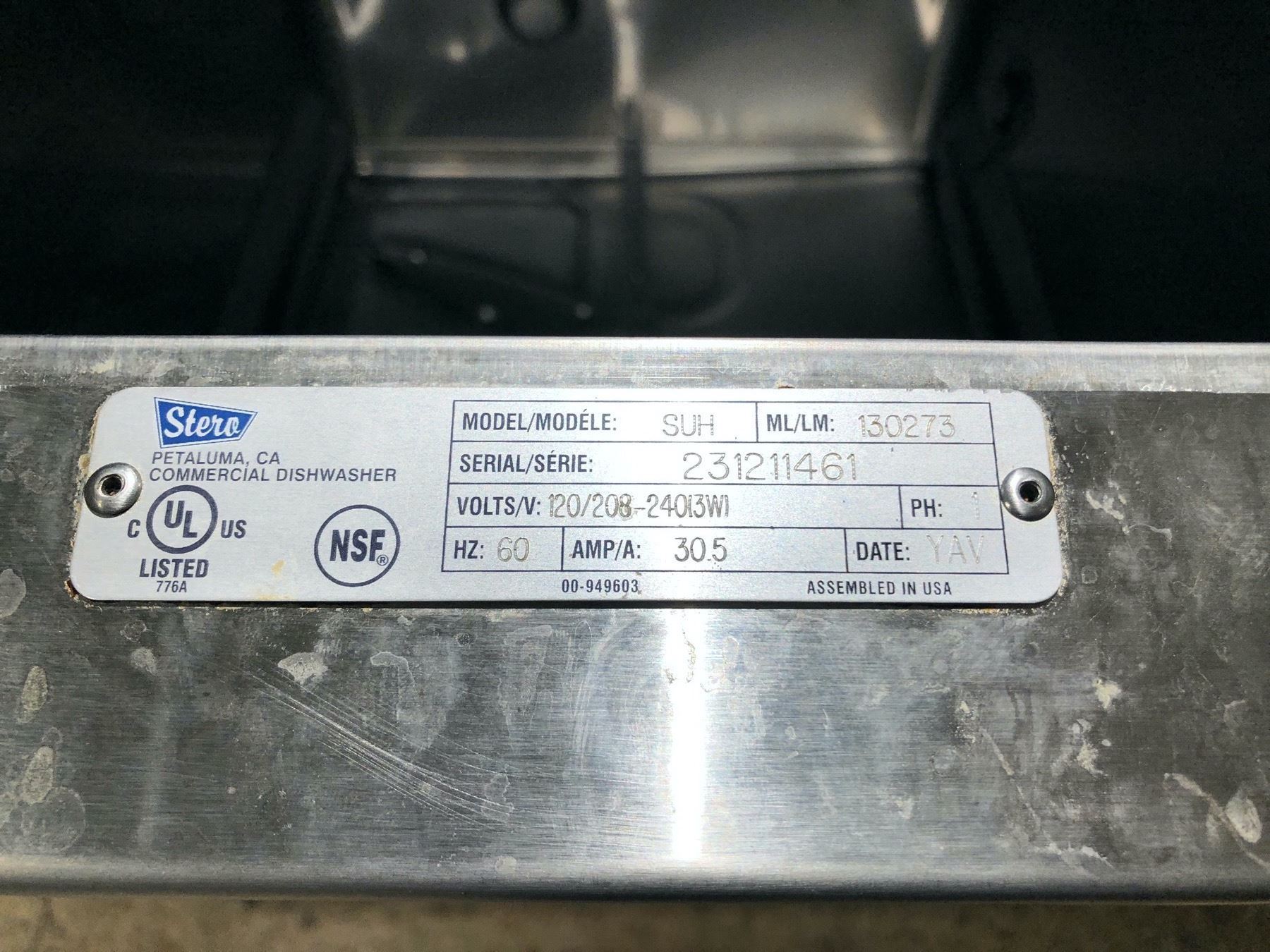 Stereo - Undercounter Dishwasher - Model: SUH-1 - replacement cost: $5000