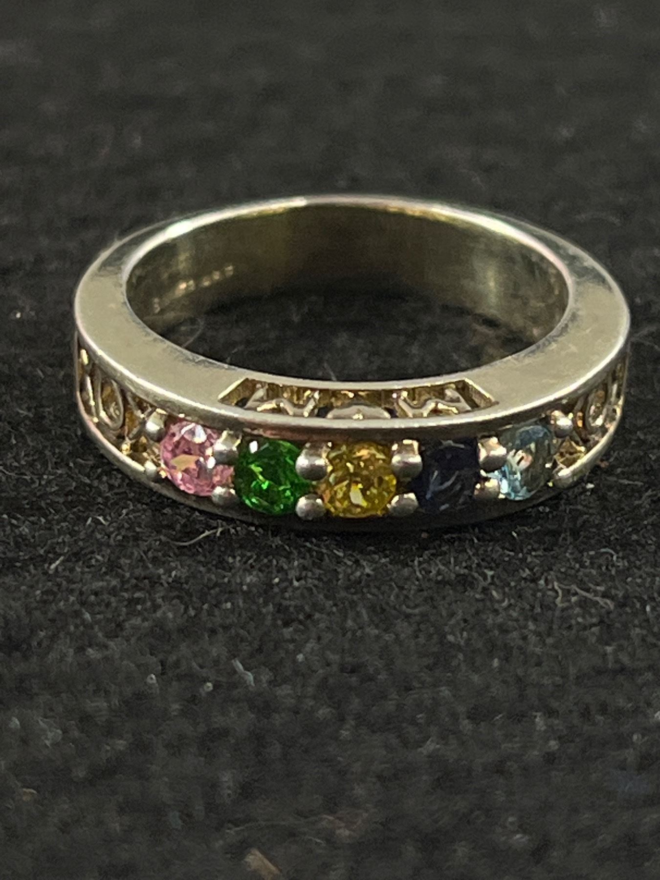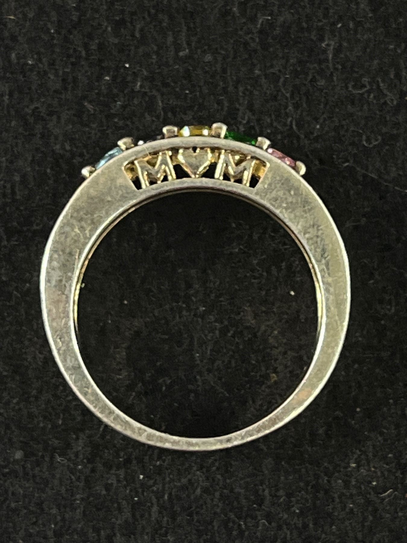Sterlign Silver with Various Gemstones MOM Ring Great Condition Size 6