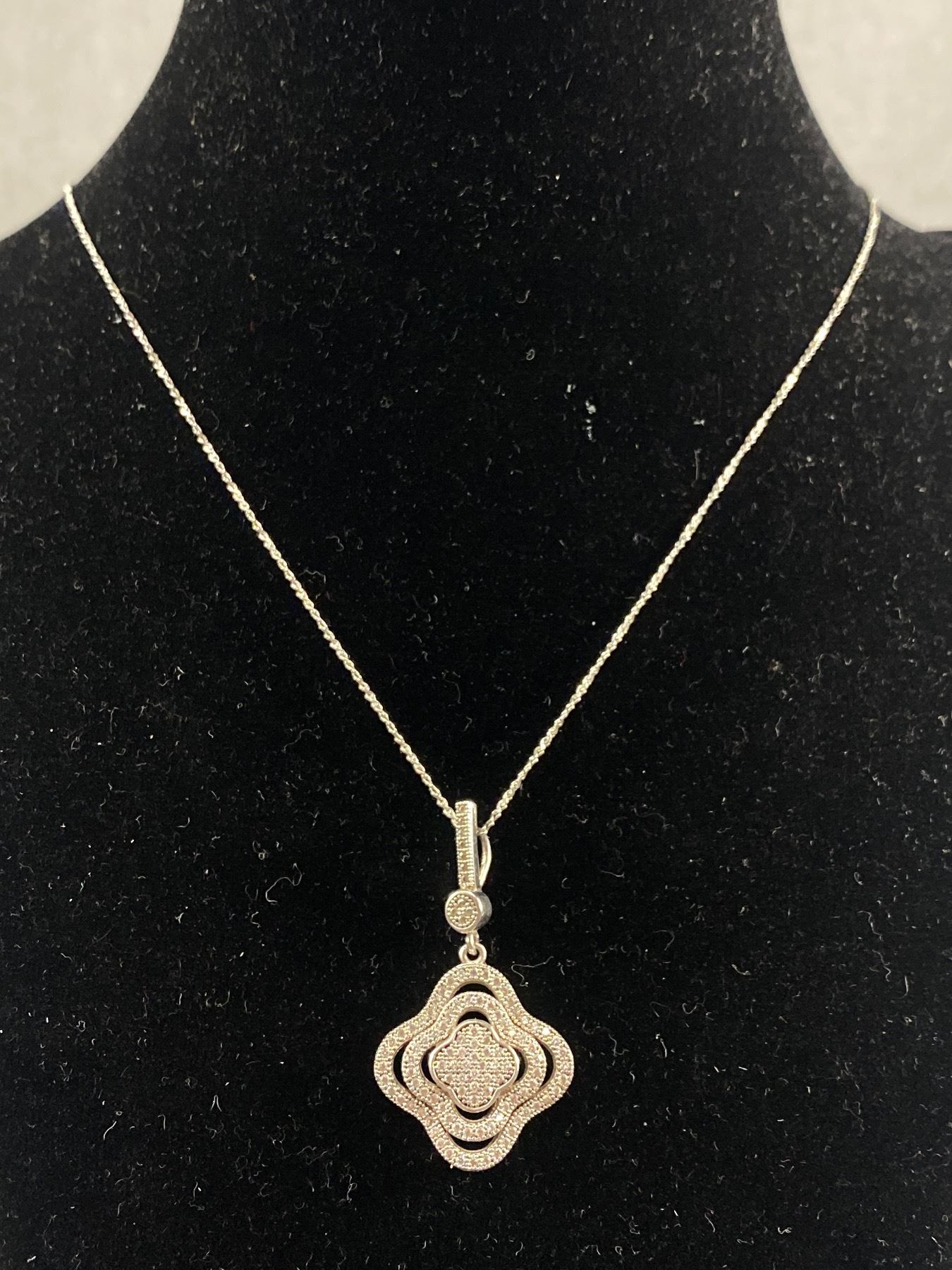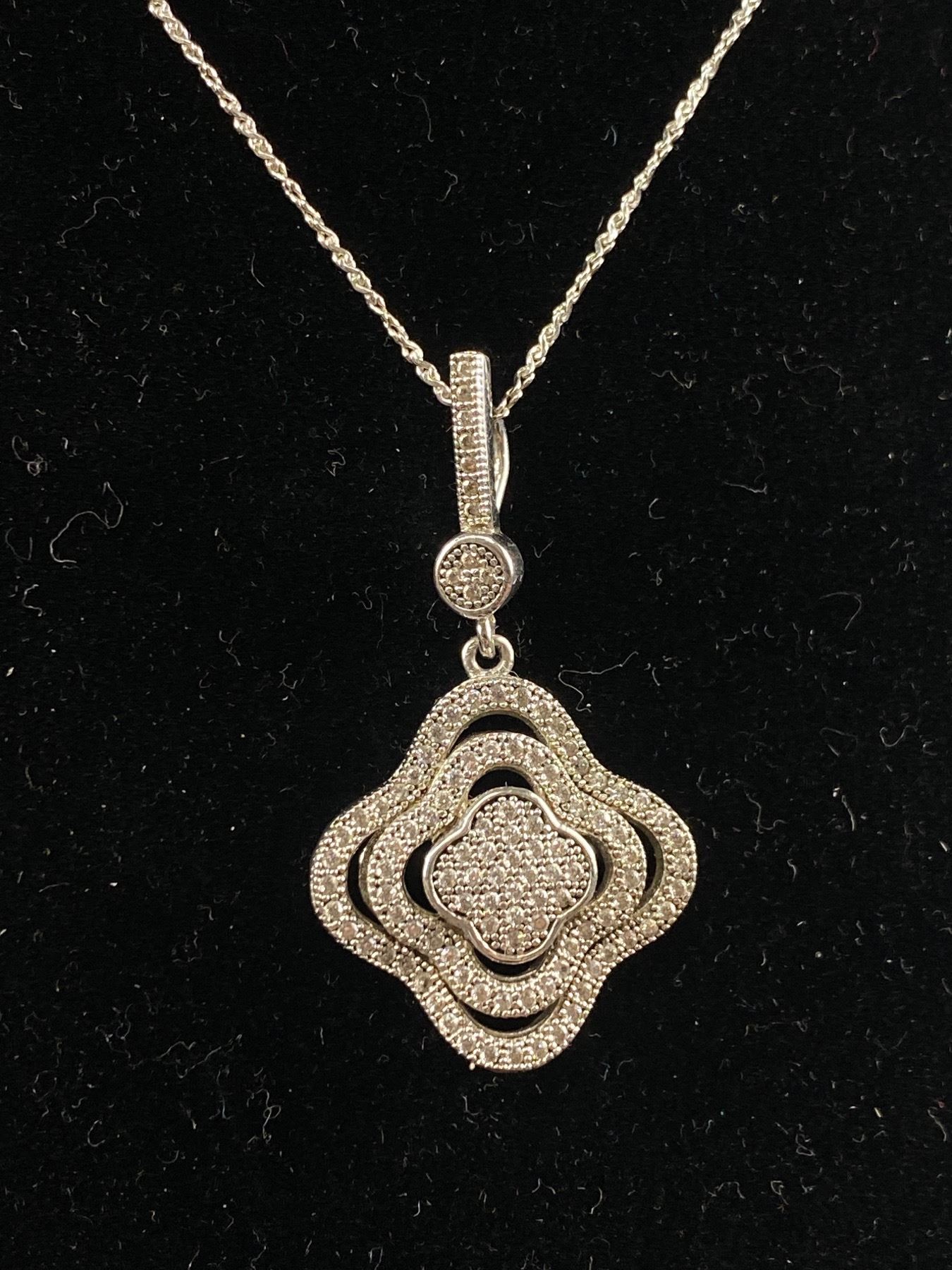 Sterling 925 CZ Pave Cluster Pendant - 1 1/2" On 20" 925 Sterling Chain- 5.7 Grams - Marked & Tested