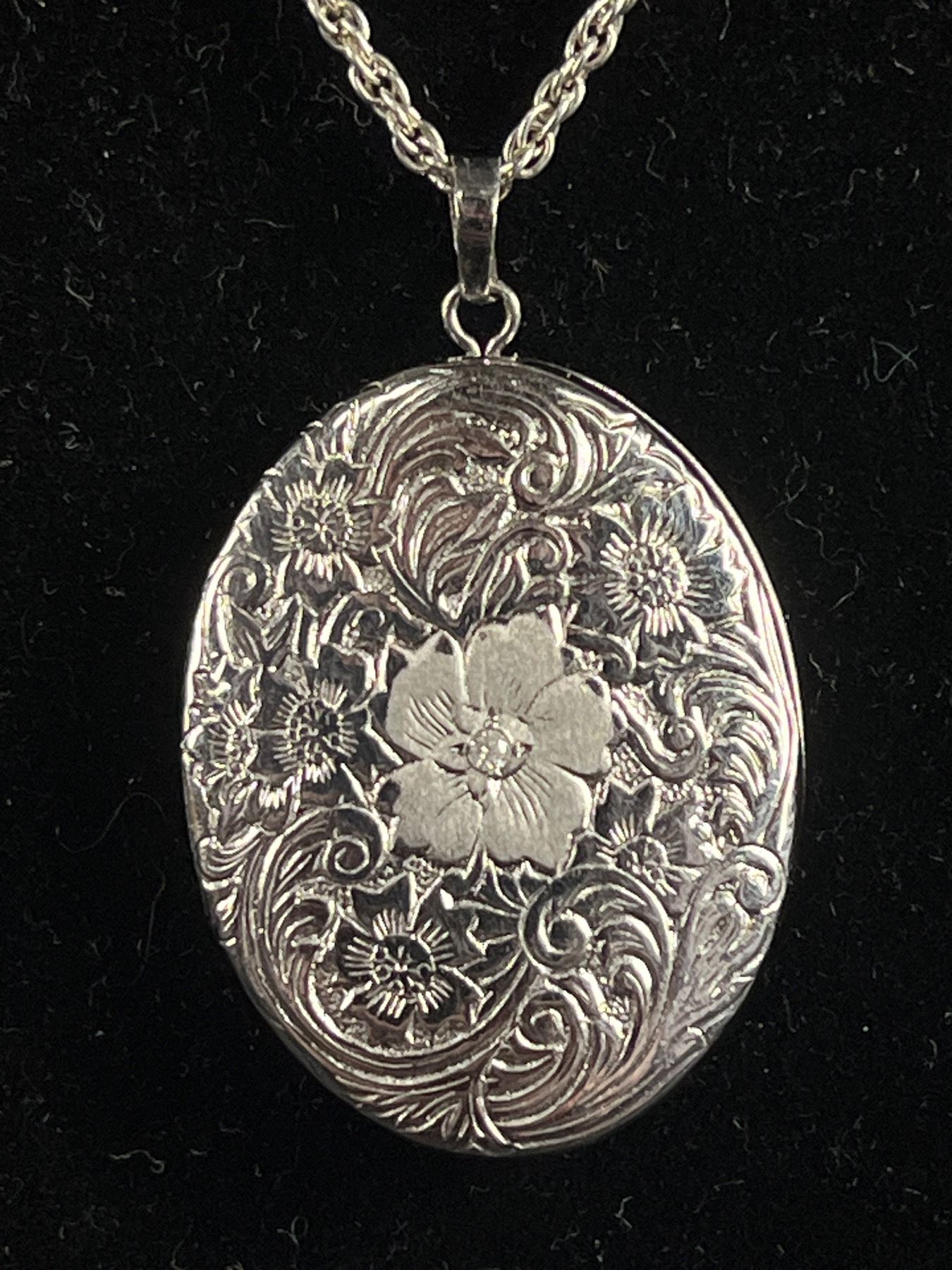 Sterling Silver 3 Photos Picture Locket Pendant with 925 Sterling Silver Chain Necklace Marked 925 Tablots