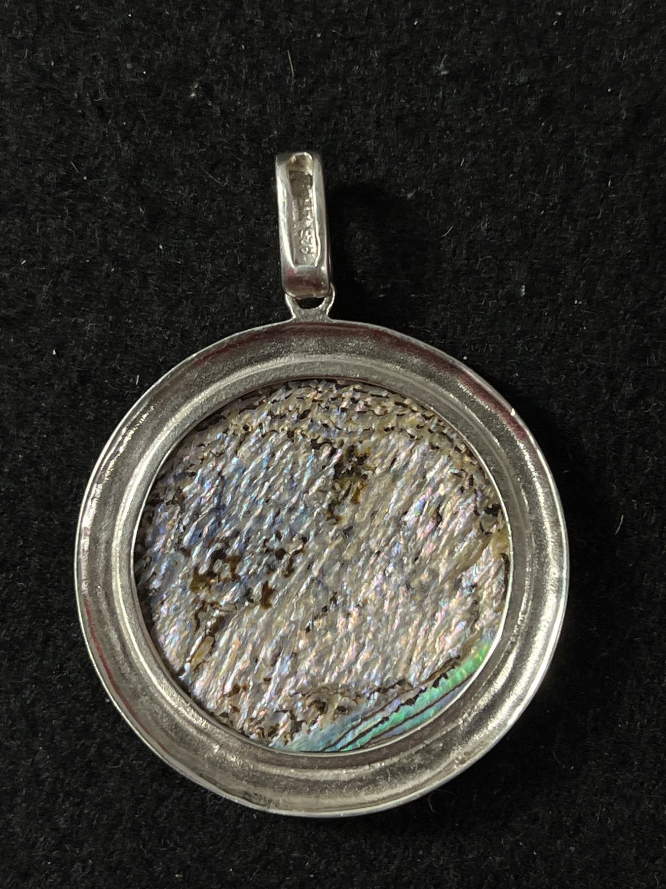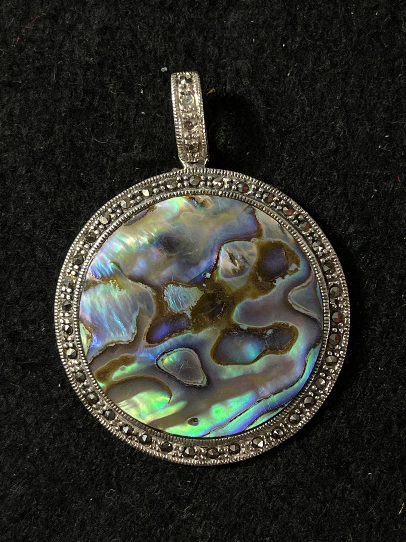 Sterling Silver 925 1.5" Across 2" With Bale - Abalone Marcasite Pendant - 9.32 Grams - Marked 925 - Tested