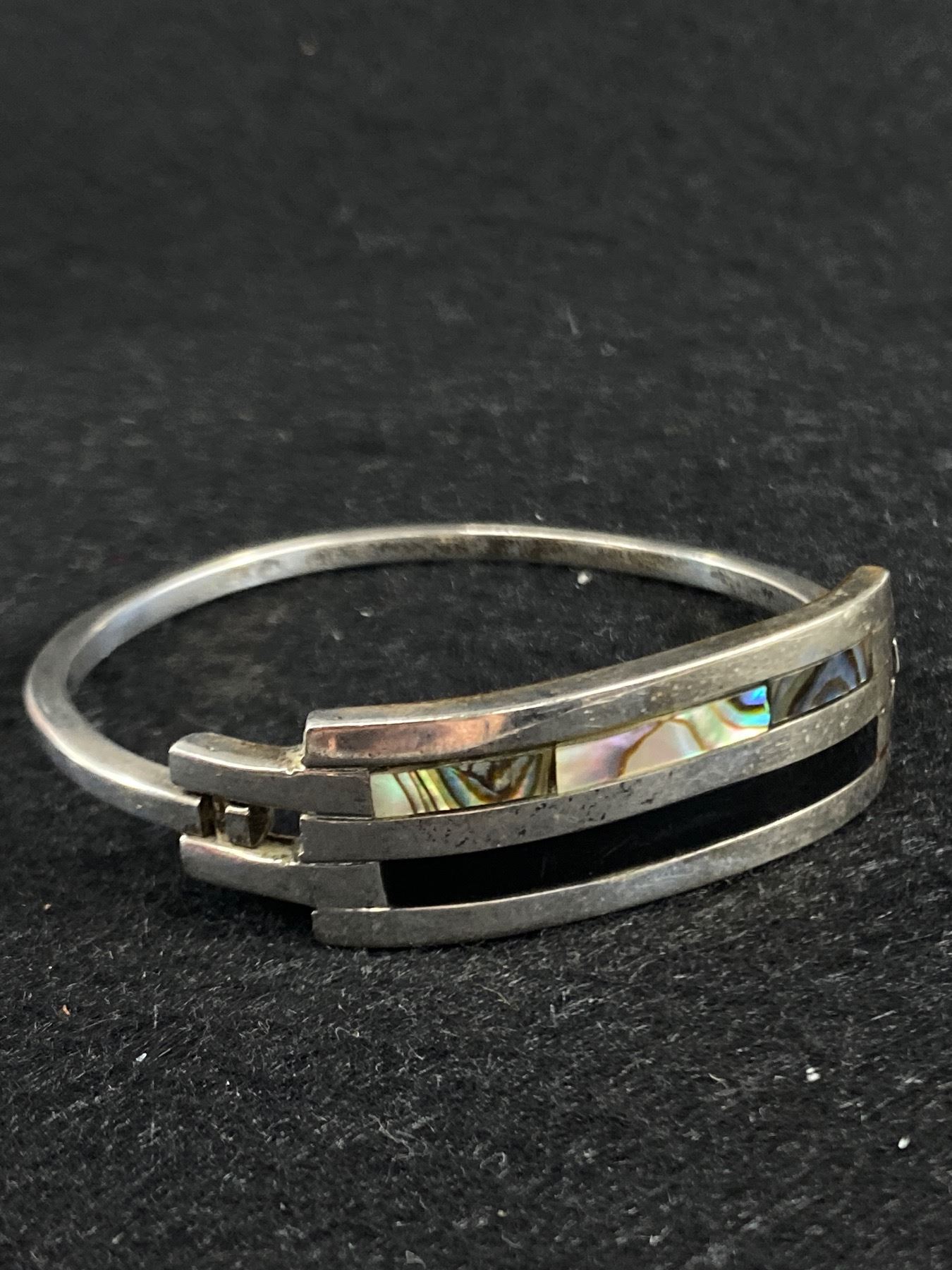 Sterling Silver Alpaca Bracelet with Inlay Abalone/Mother of Pearl