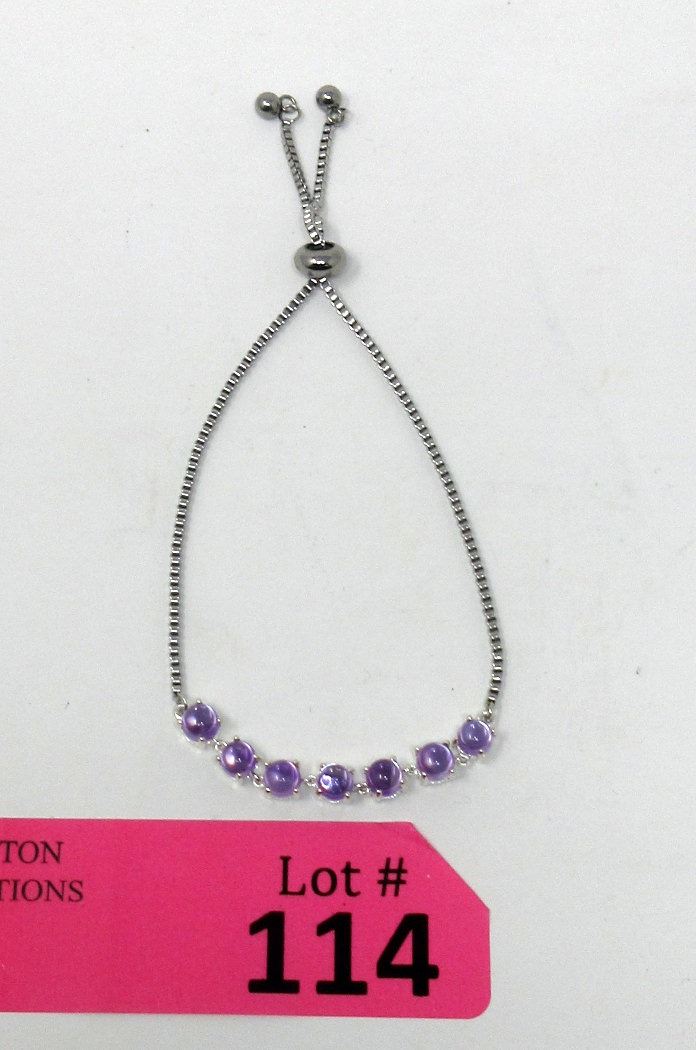 Set with 7 purple cabochons. Pull chain closure. Retail value $300.
