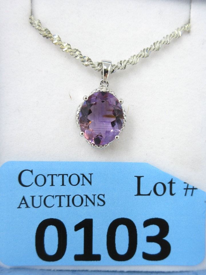4.5 CT, Oval cut amethyst. VS Clarity. Includes chain & $330 certificate.