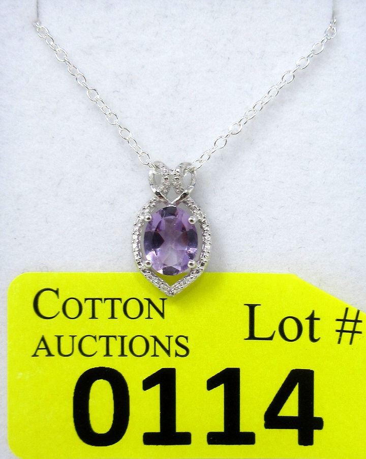 Oval cut amethyst with a double loop bail. Includes chain. Retail value $310.