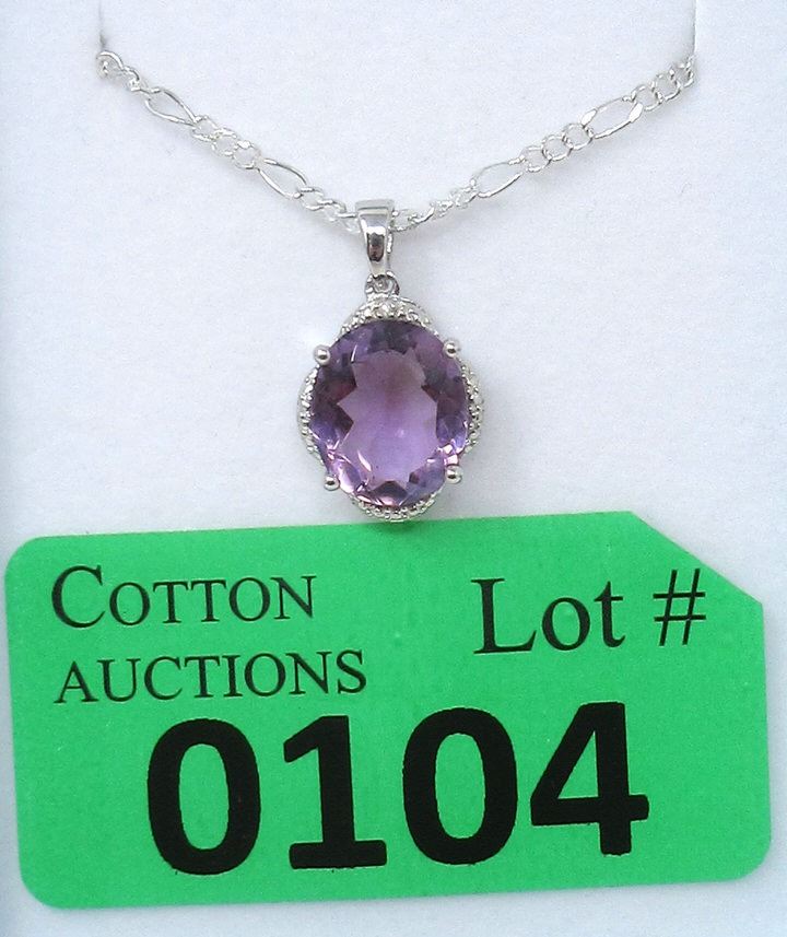 4.5 CT, Oval cut amethyst measuring 10 x 12 mm. VS Clarity. Includes chain & $330 certificate.