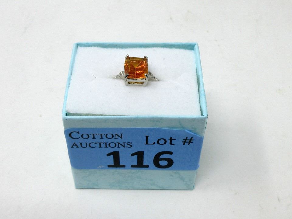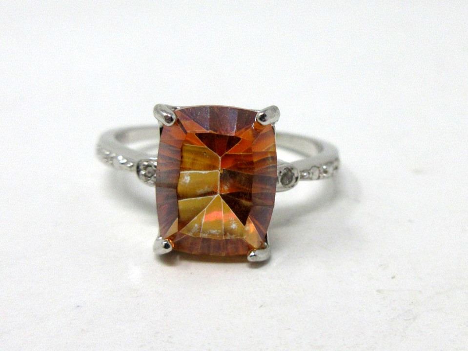 Emerald cut topaz with 2 side diamonds. Retail value $340