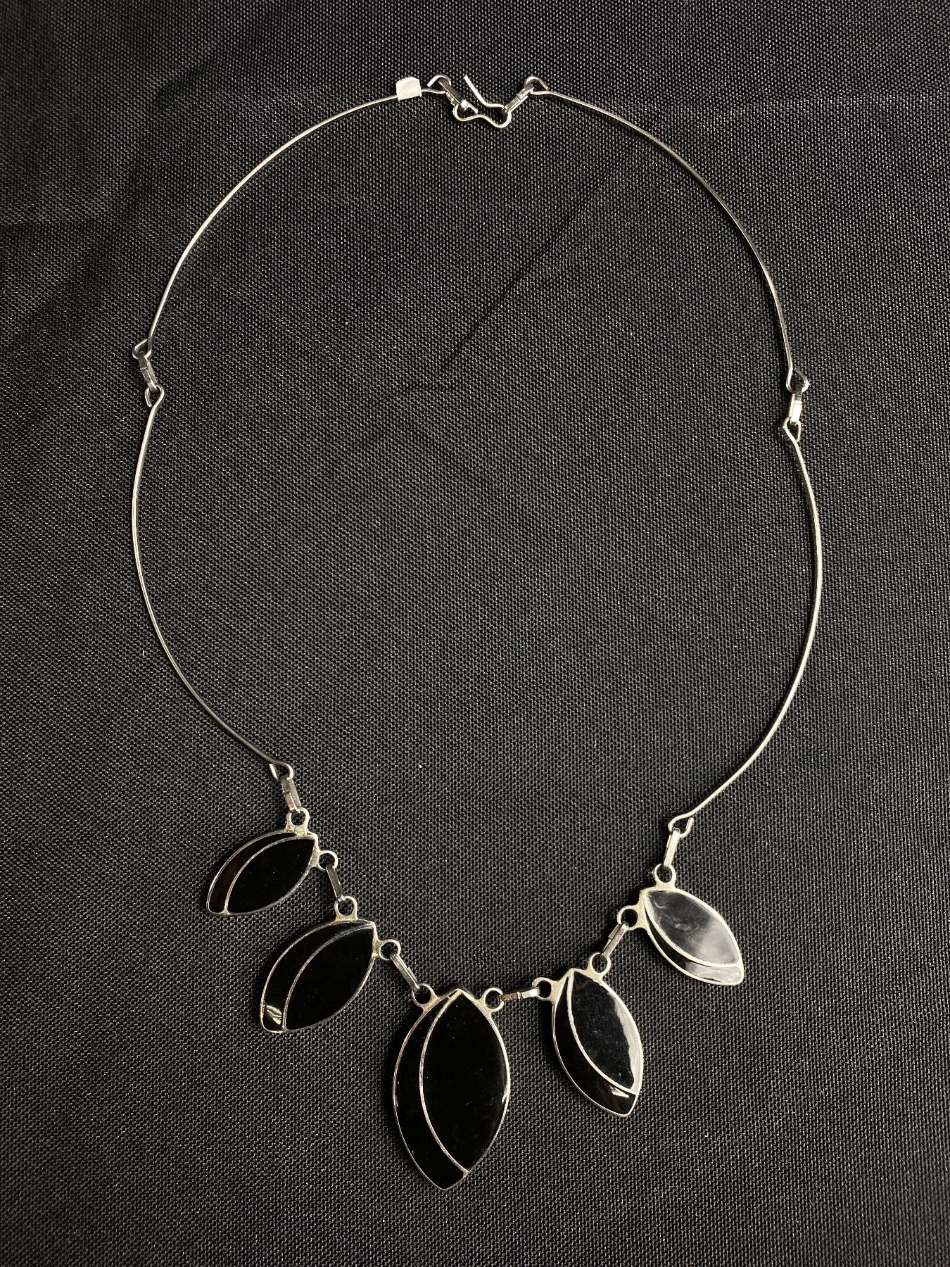 Sterling Silver Black Onyx + Mother of Pearl Necklace