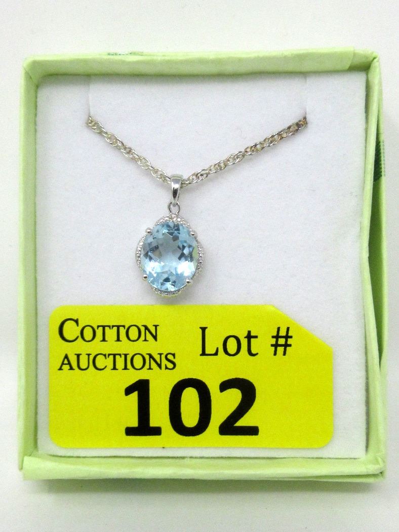 5.3 CT, Oval cut blue topaz. VVS clarity. Includes chain & $350 certificate.