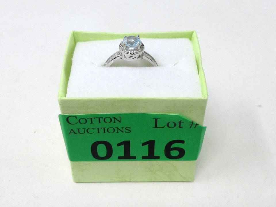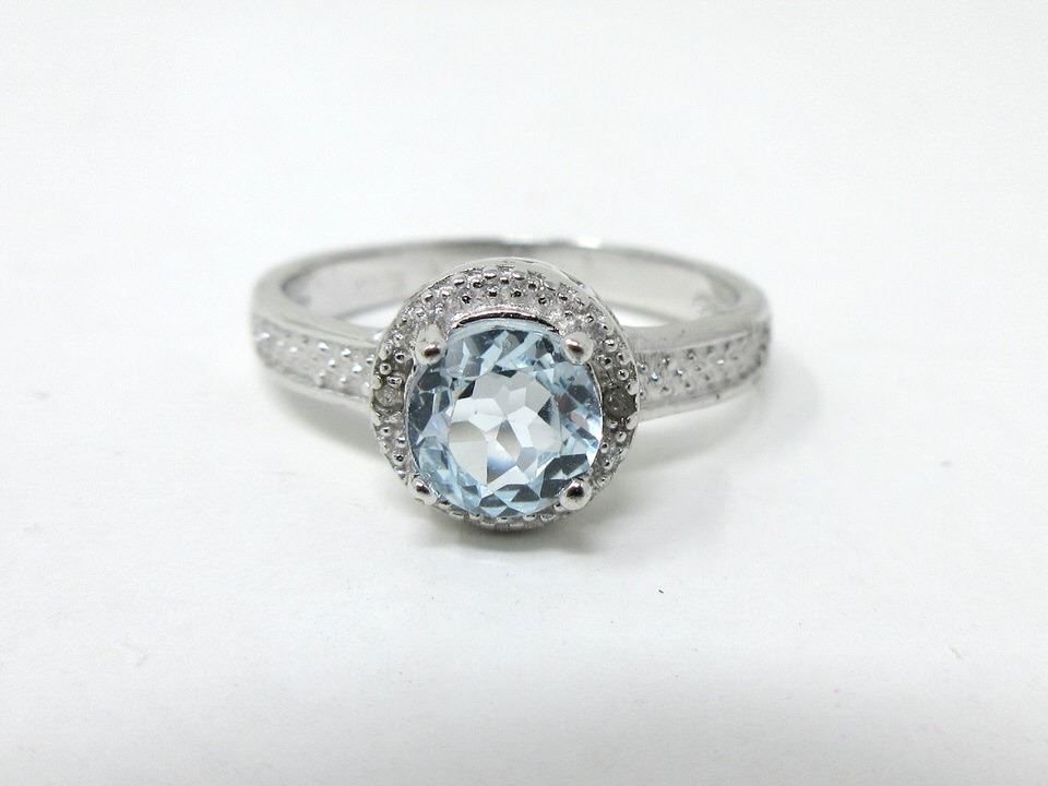 Round cut topaz in a halo setting, with 2 diamonds. Retail value $220.