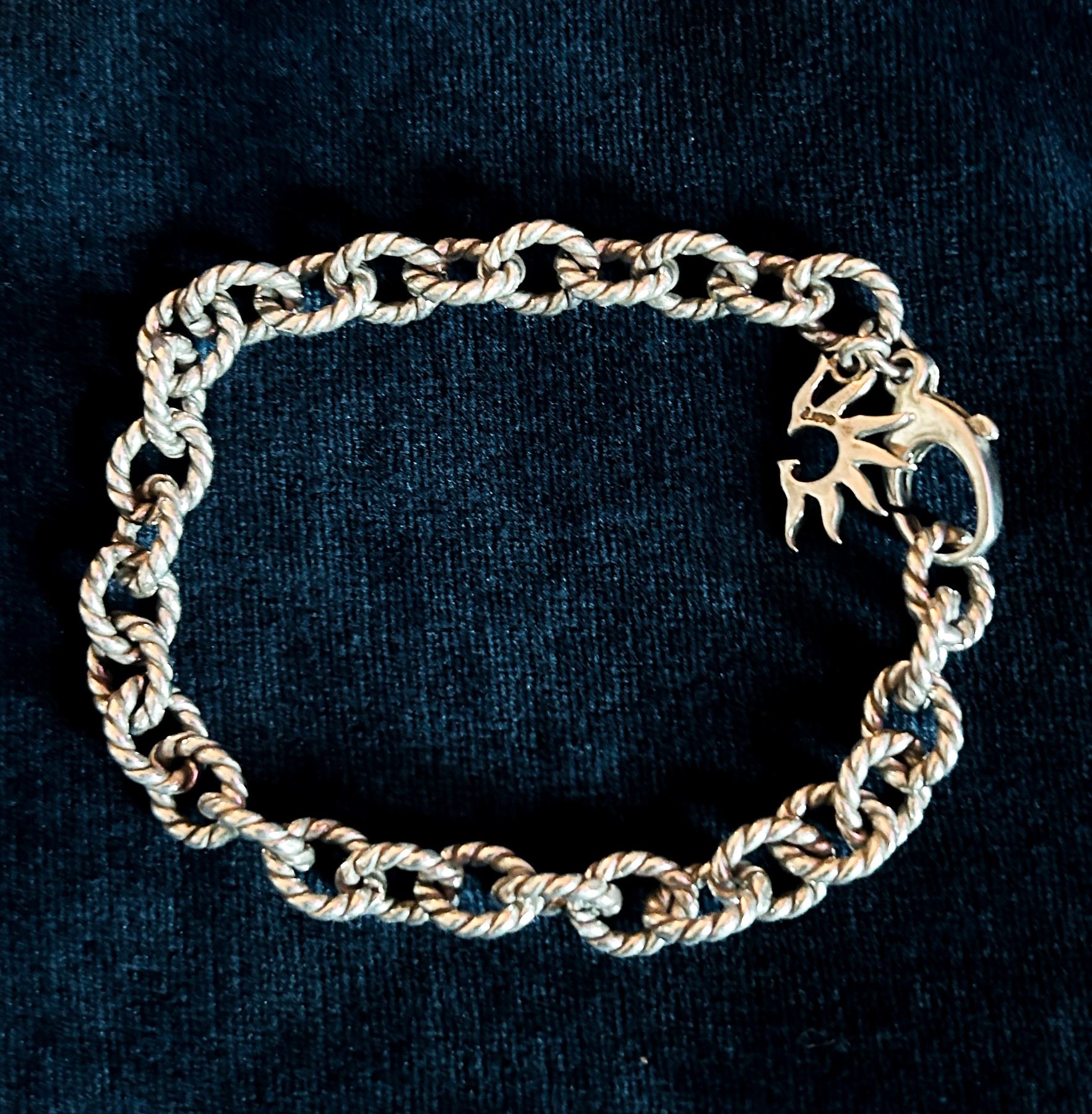 Solid sterling silver rope-link bracelet with lobster clasp and attached charm featuring the Gaylord Hotels sunburst logo. Stamped 925. Total weight approx. 20g.
