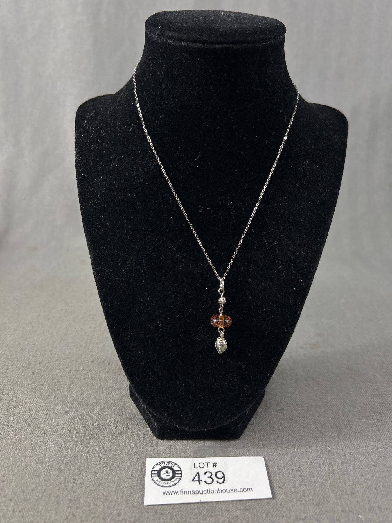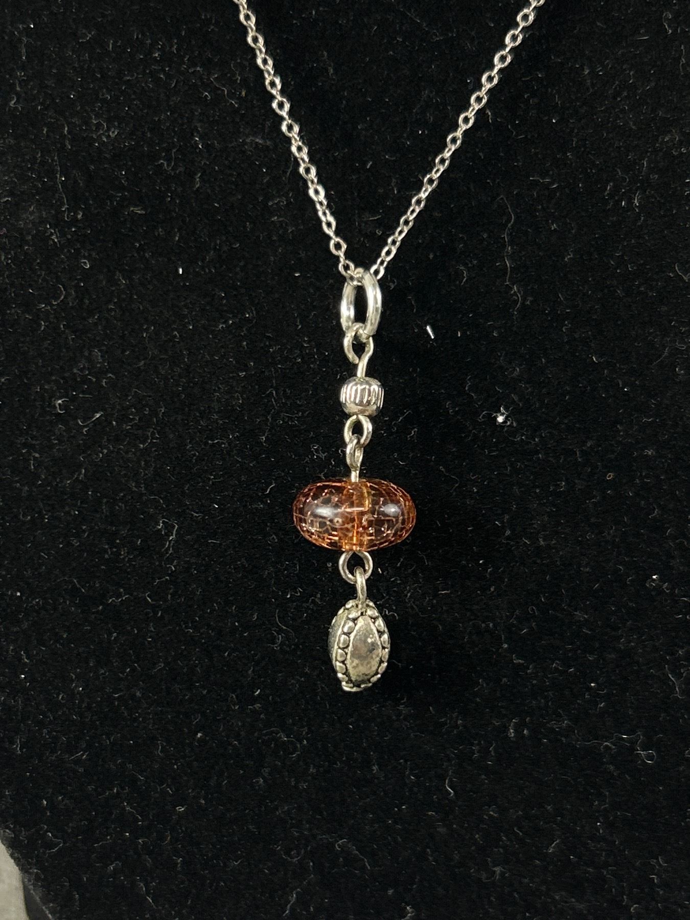 Sterling Silver Chain with Genuine Amber Pendant Necklace