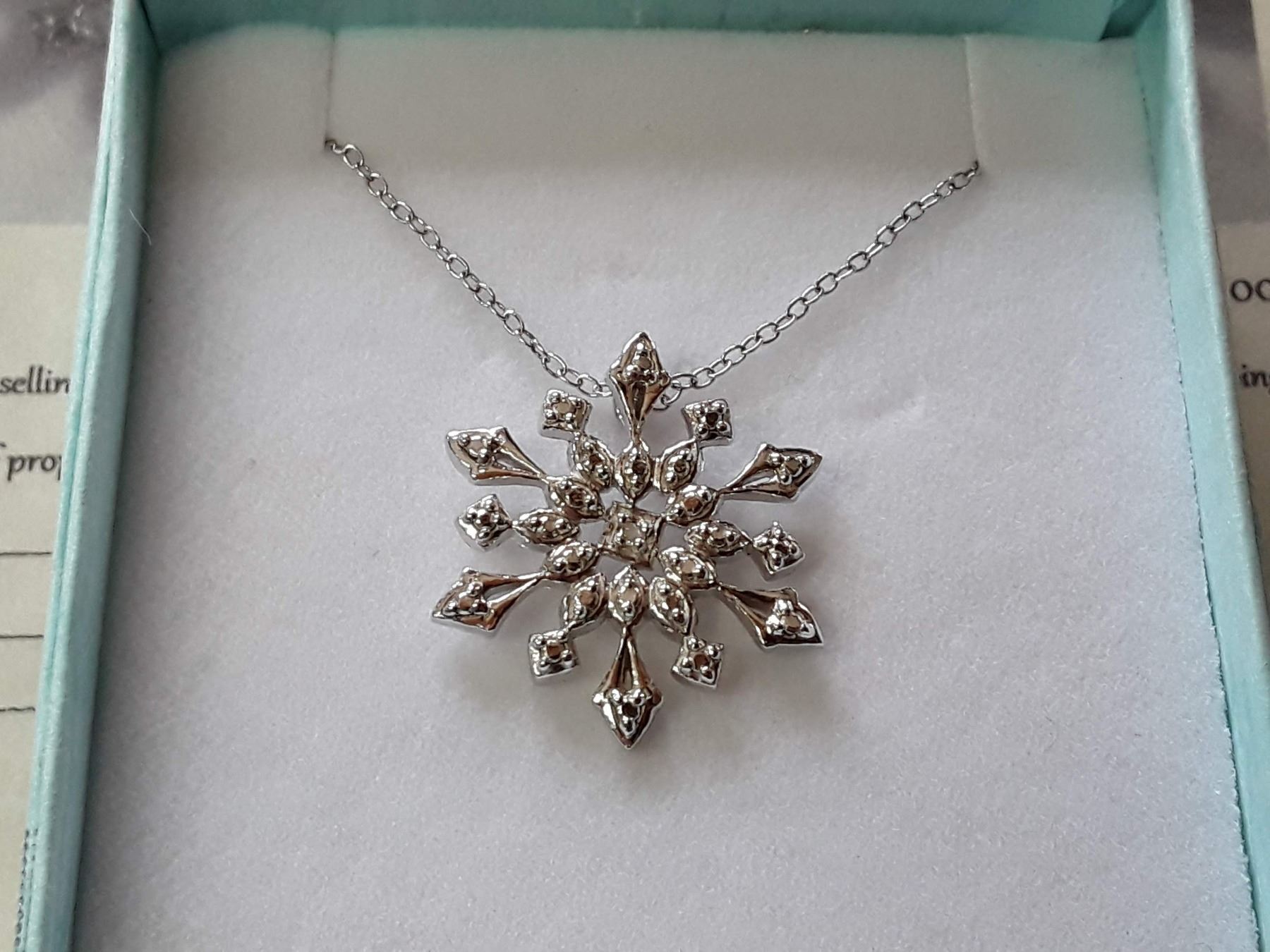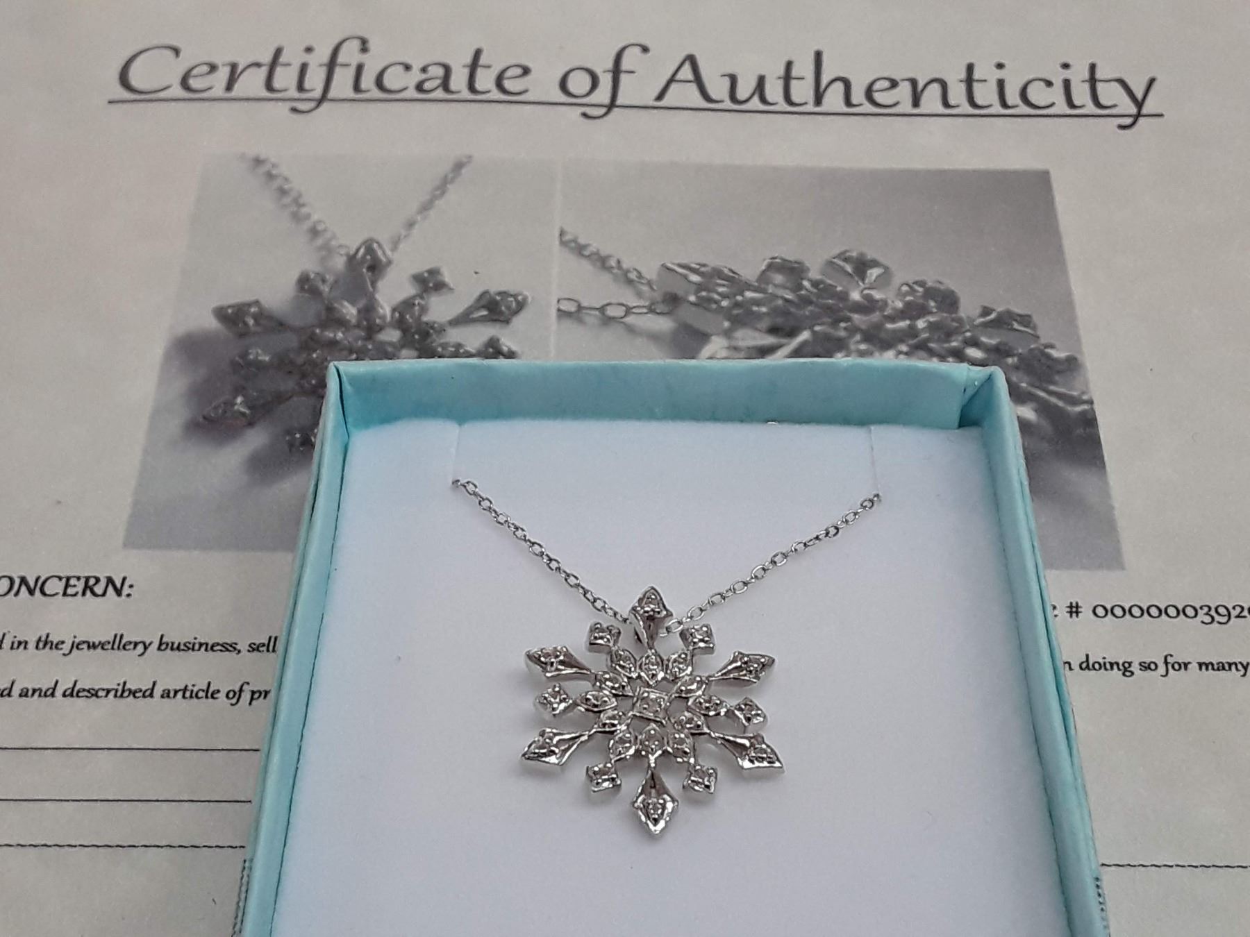 Sterling Silver Diamond Snowflake Slide Pendant/Necklace Set With 18" Silver Chain. Suggested Value $275 With Certificate -- 17% Buyer Fee. Payment Processed through Live Auction World Saturday @ 11:15 ( Visa or Master Card ) pick up Saturday Before 3:00, or Tuesday 9:30 till 5:00