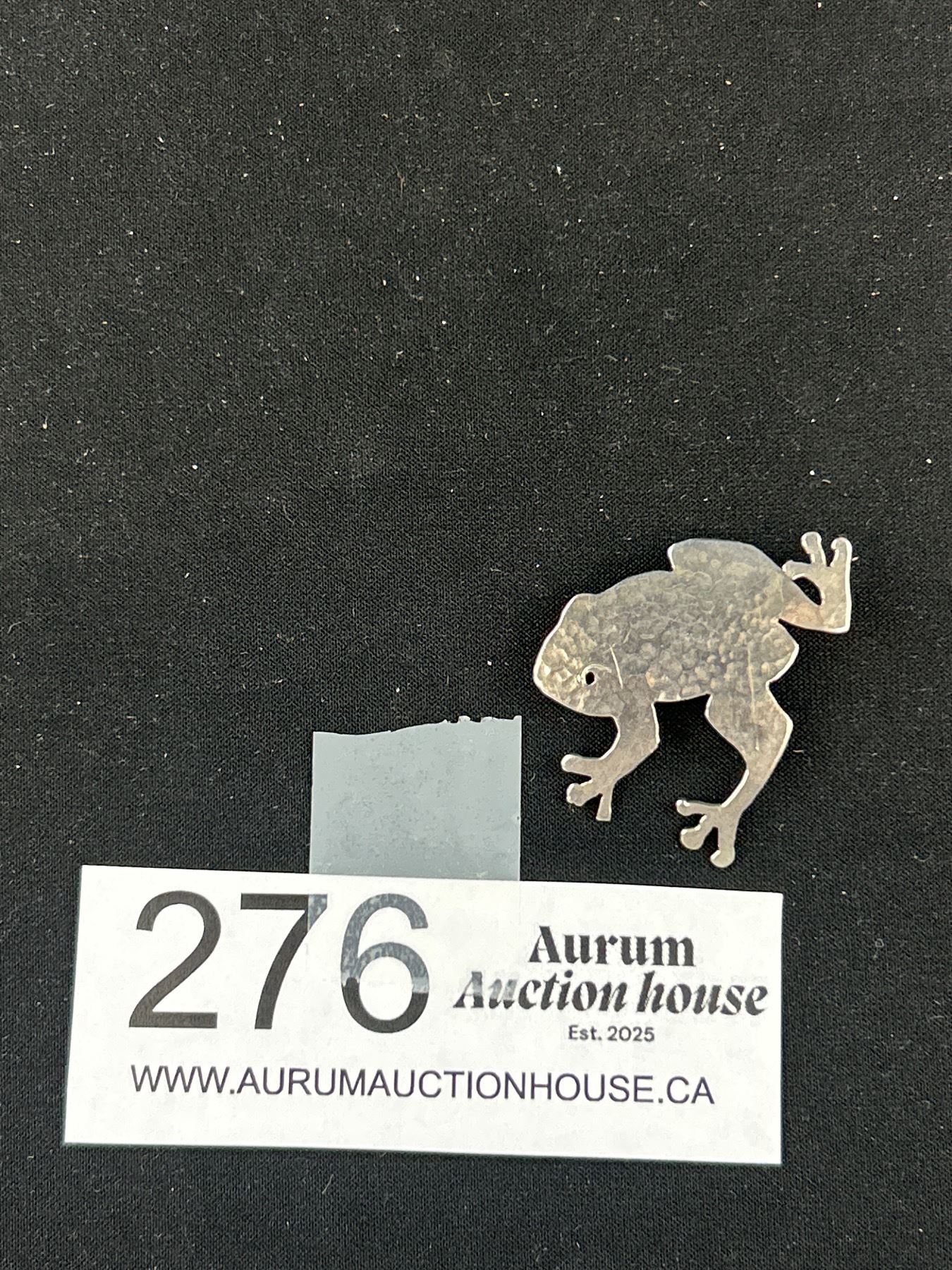 Sterling Silver Frog Brooch Unusually Design Marked Sterling