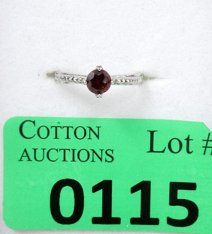 Sterling Silver Garnet & Diamond Solitaire Ring