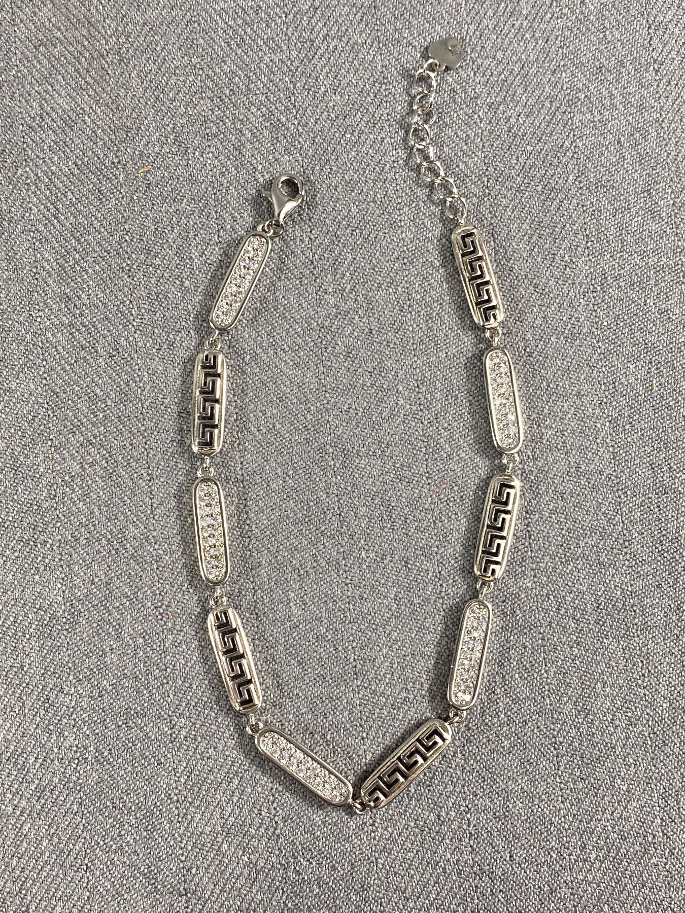 Sterling Silver Greek Key CZ Bracelet Adjustable 7.25 to 8.25", 8.1 Gr. Marked & Tested