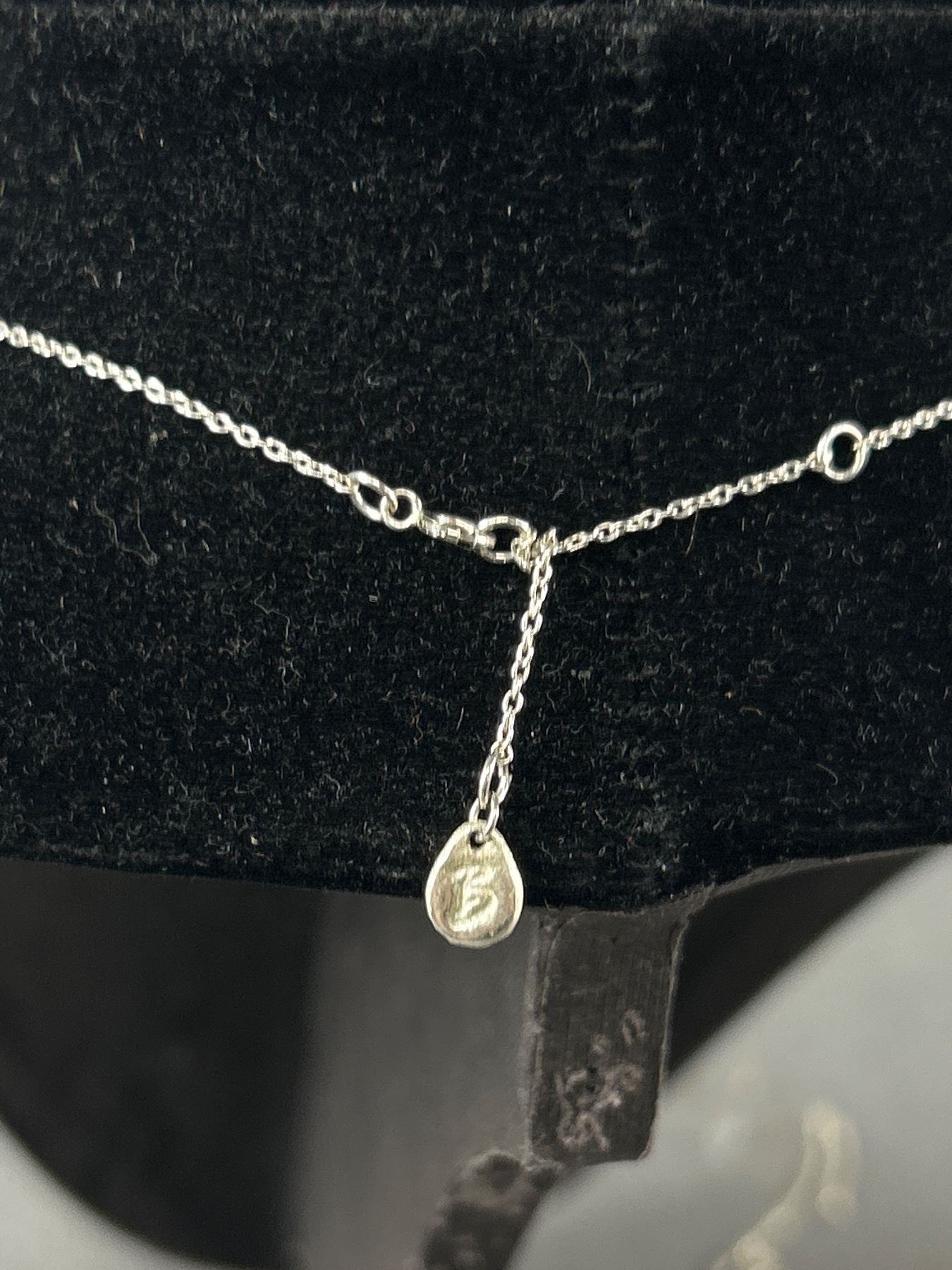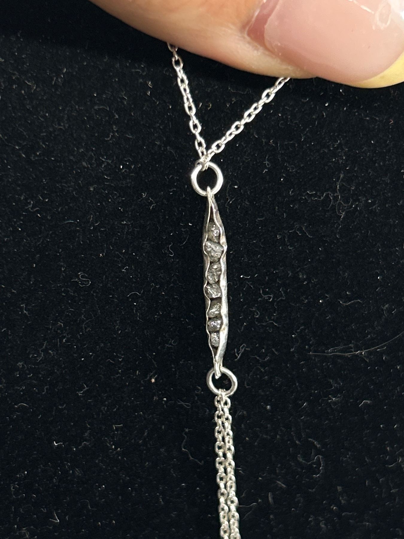 Sterling Silver Long Tassle Necklace w/ 7 Diamonds