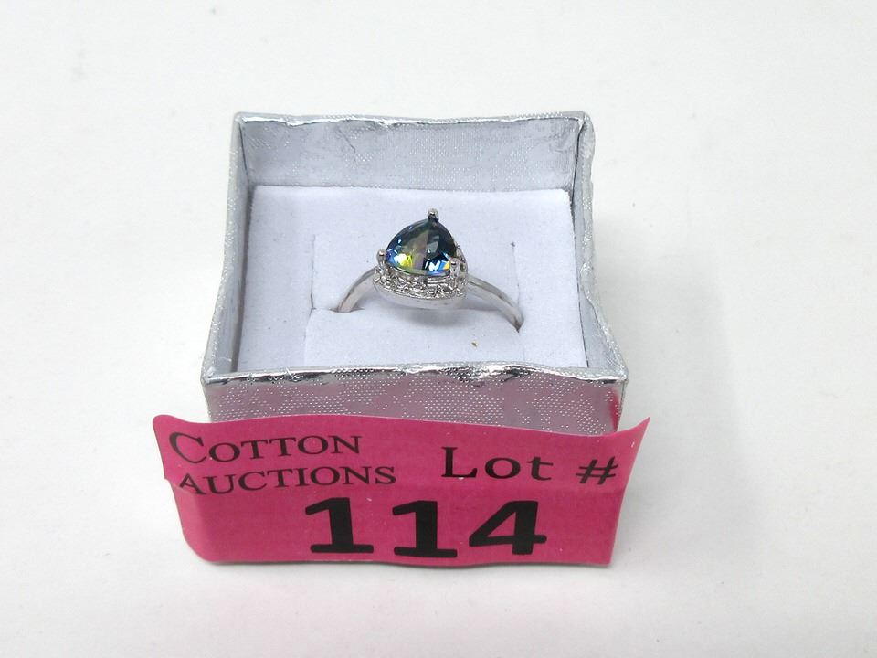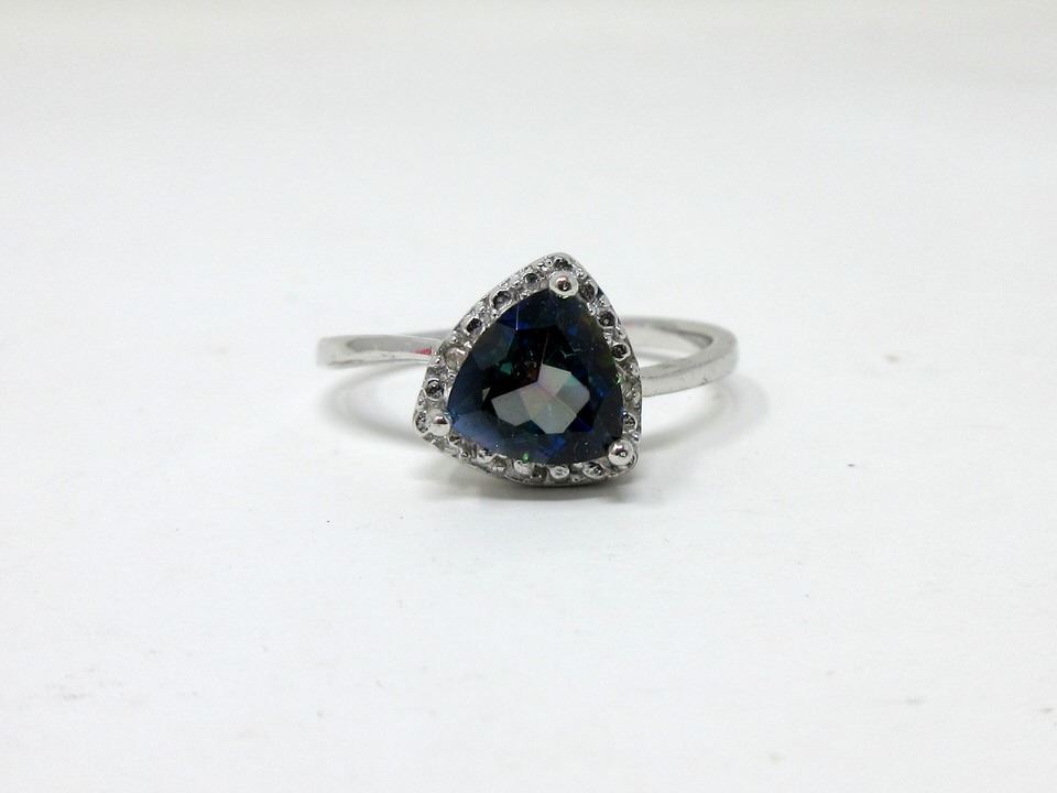 Trillion cut, ocean blue mystic topaz & 2 diamonds. Retail value $230.