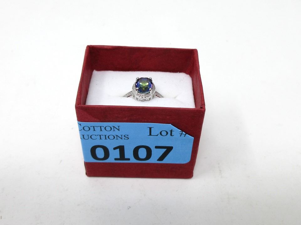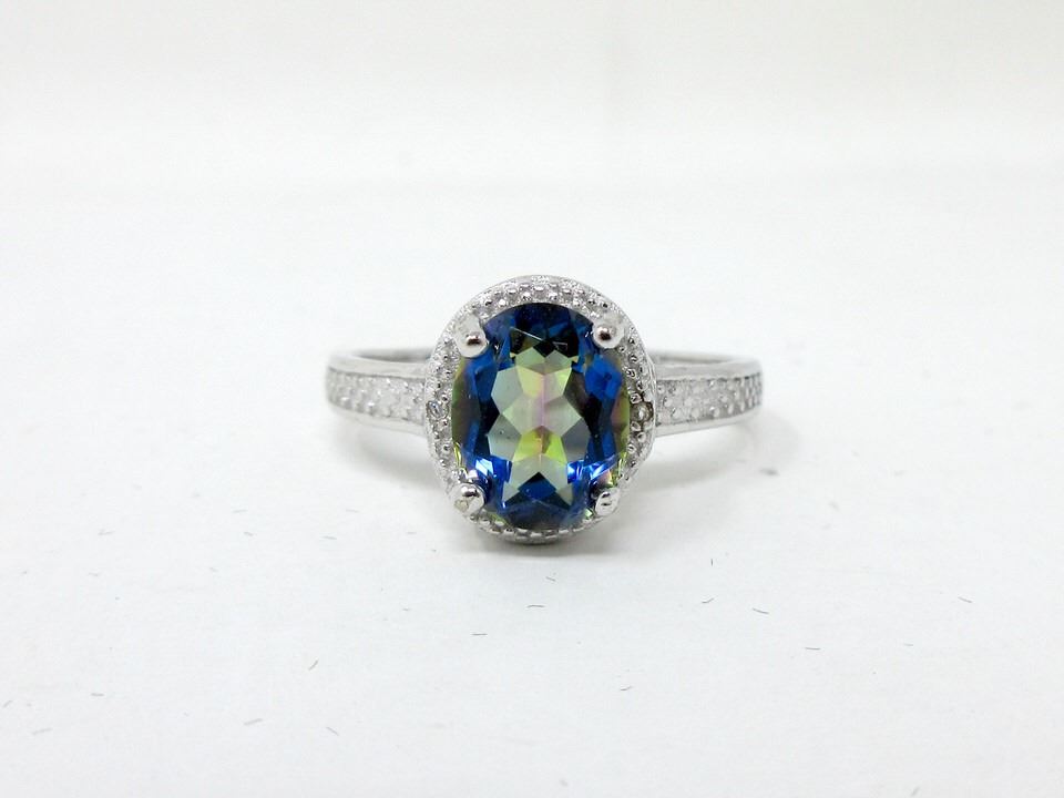 2.5 CT Oval topaz with 2 side diamonds. Includes $275 certificate.