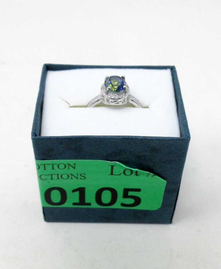 Oval cut, ocean blue topaz & 2 diamonds. Includes $275 certificate.