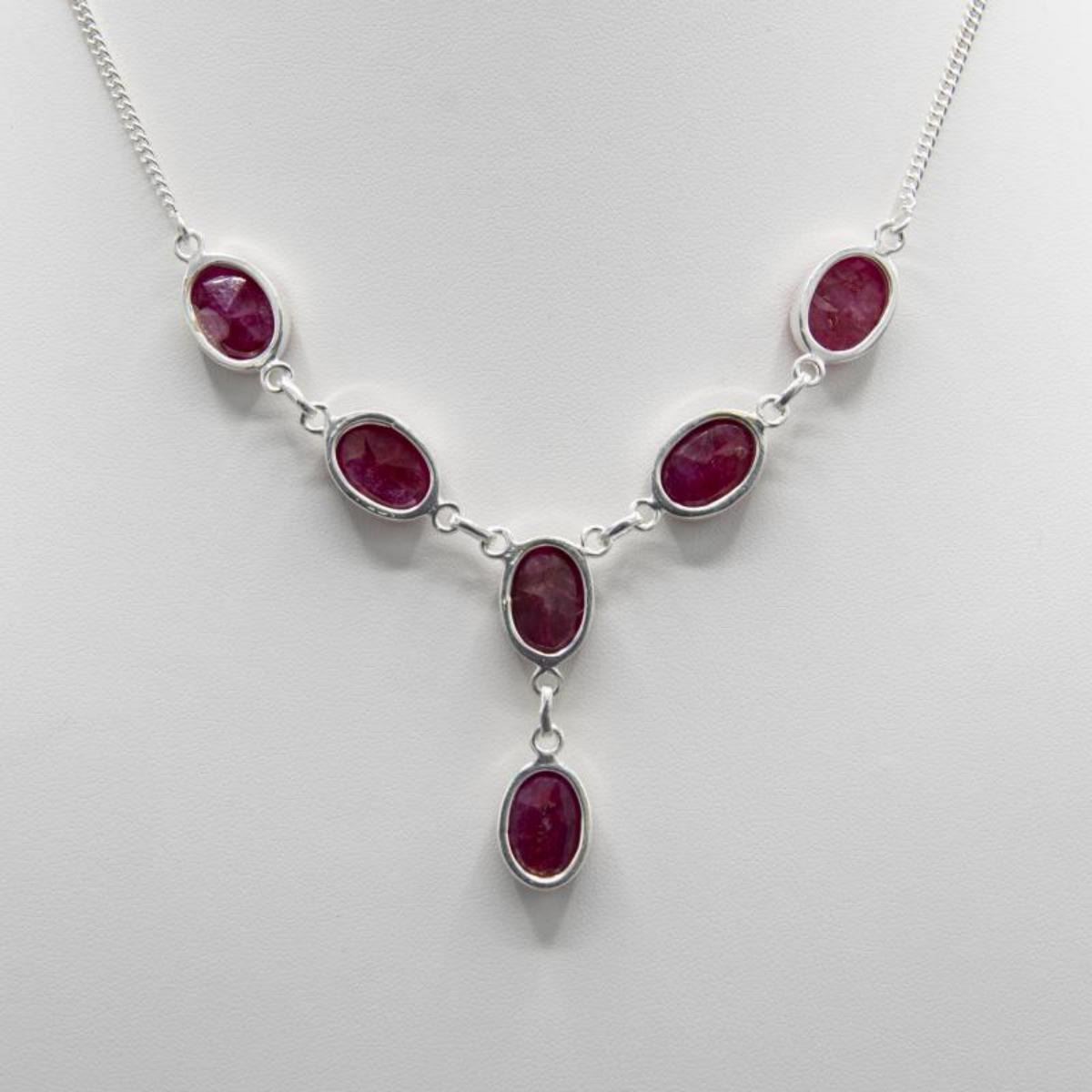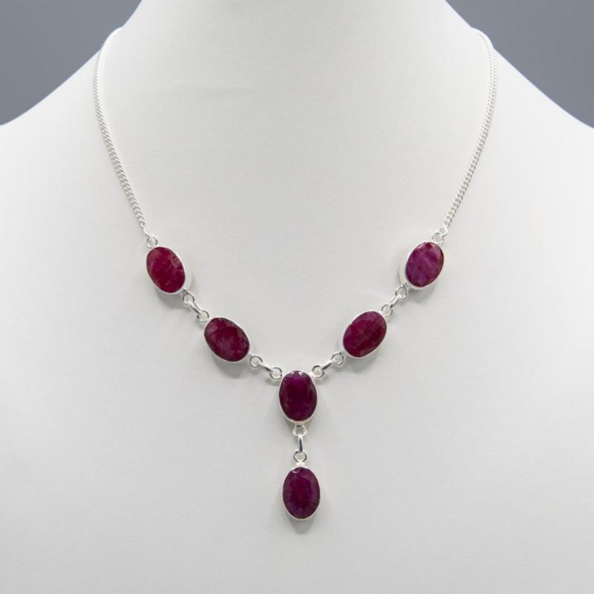 Sterling Silver Natural 55 Ct Ruby Necklace