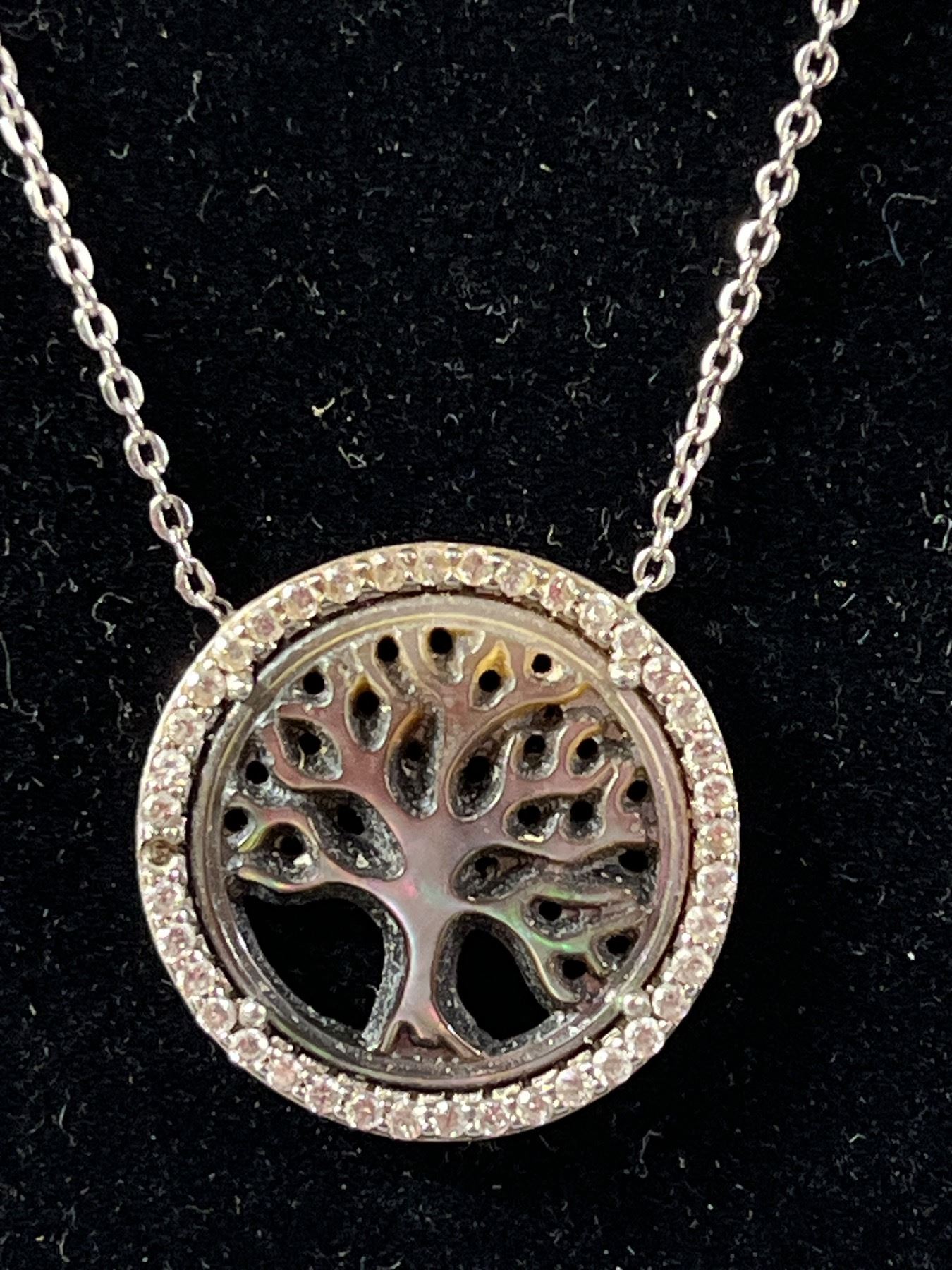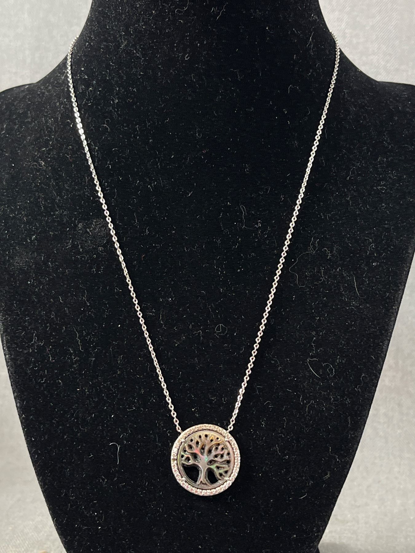 Sterling Silver Necklace with Mother of Pearl Carved Tree of Life