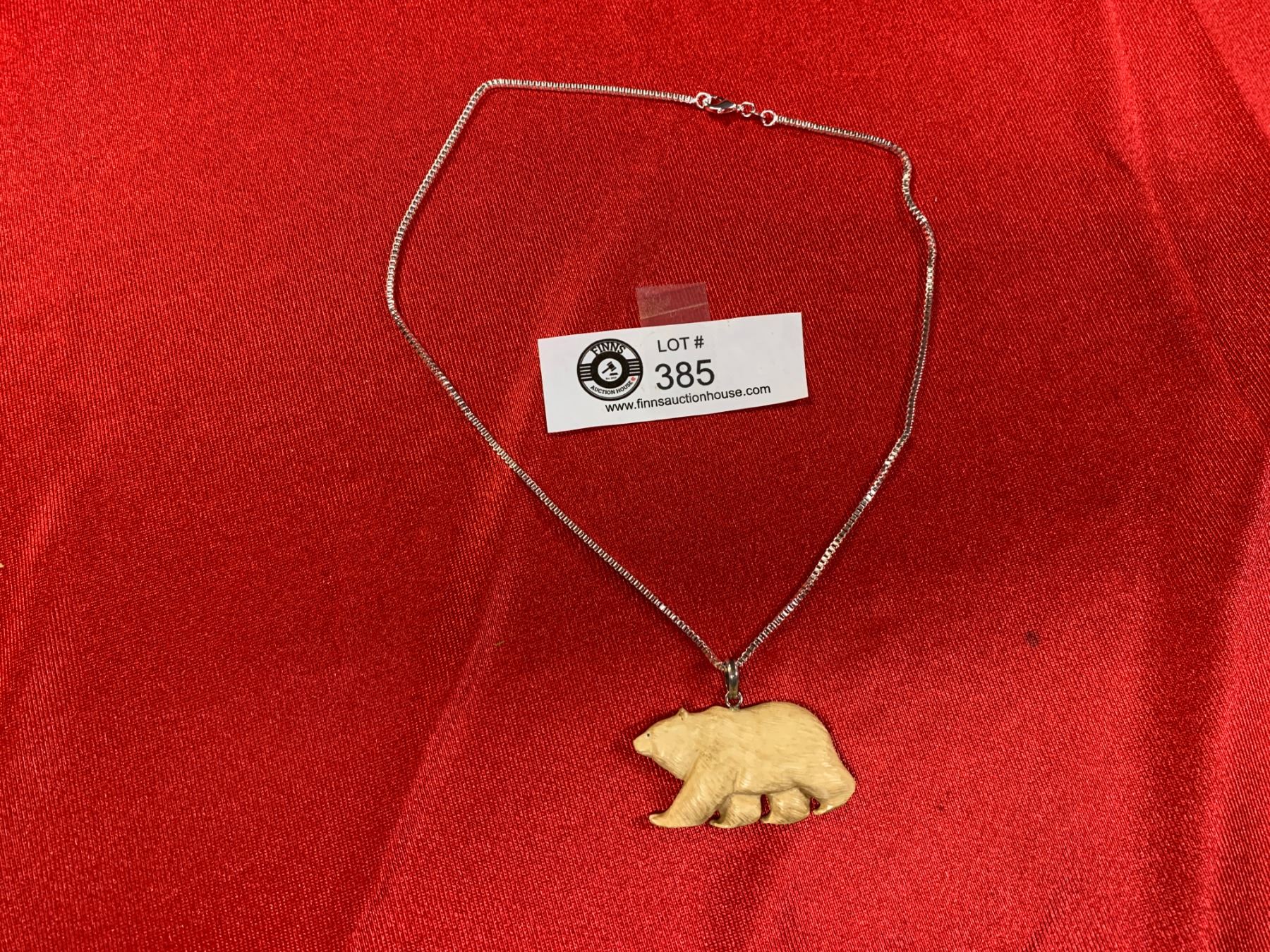 Sterling Silver Necklace with Nicely Carved Bear Pendant
