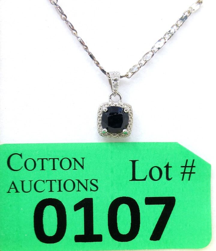 1.25 CT Square cut sapphire. Includes chain & $300 certificate.