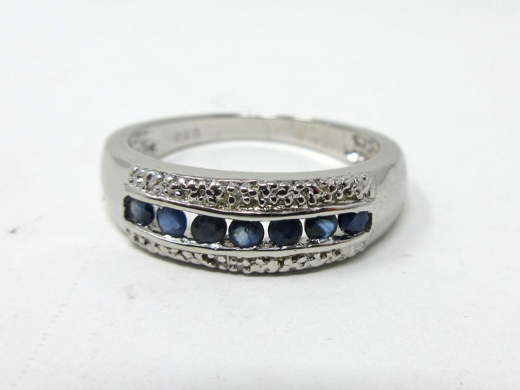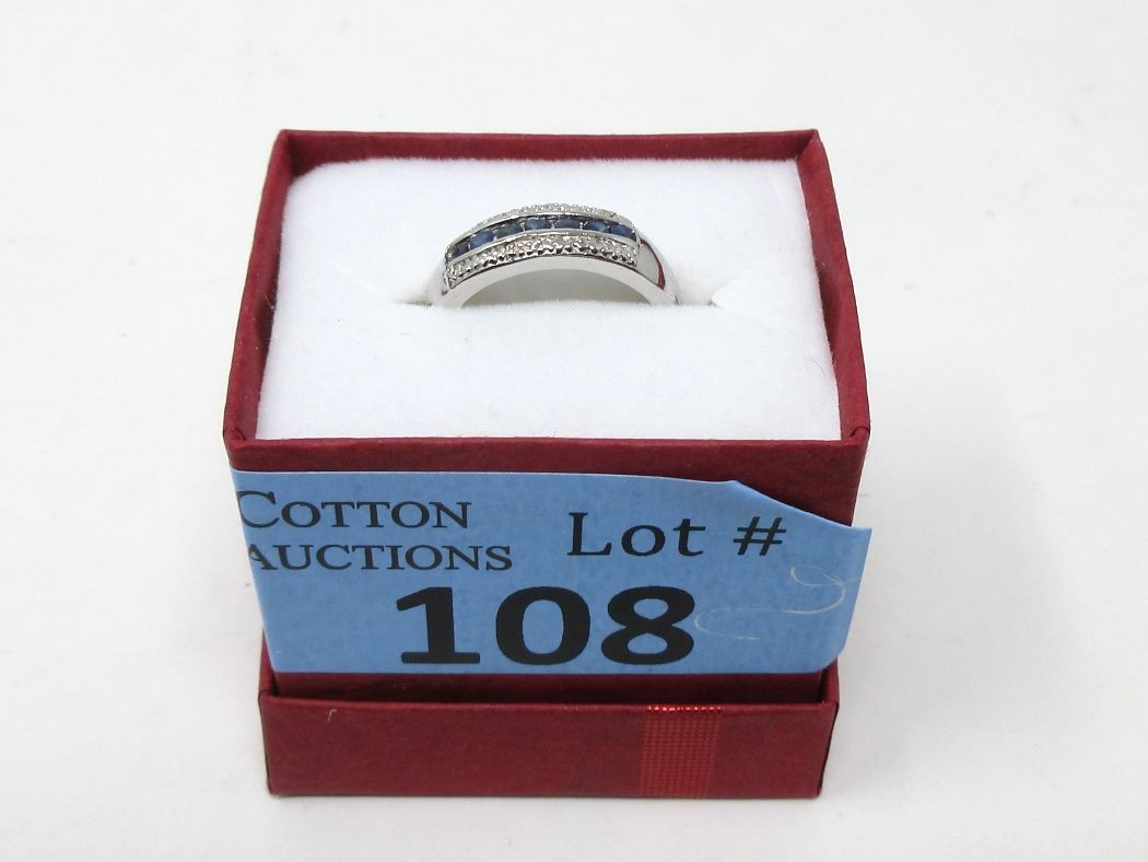 7 Channel set round blue sapphires & 2 diamonds. Includes $400 certificate.