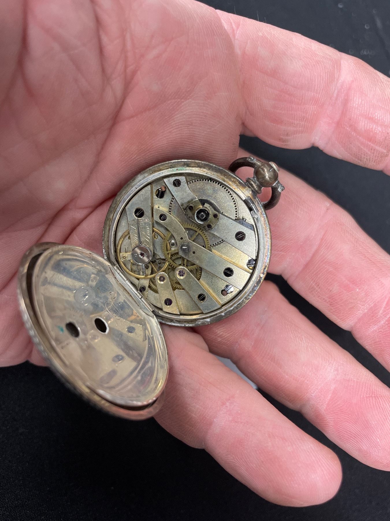 Sterling Silver Swiss Antique Pocket Watch - Needs Work