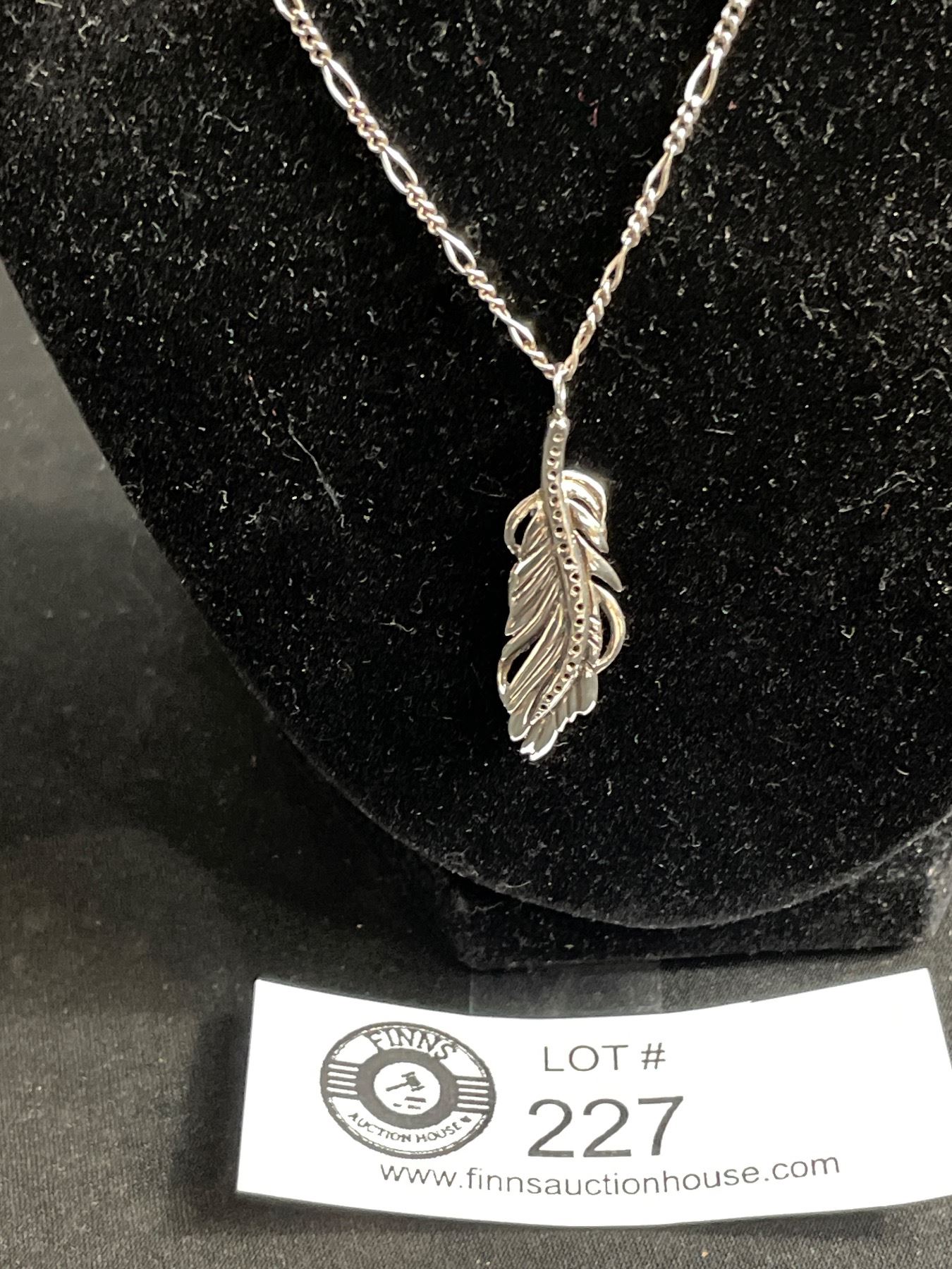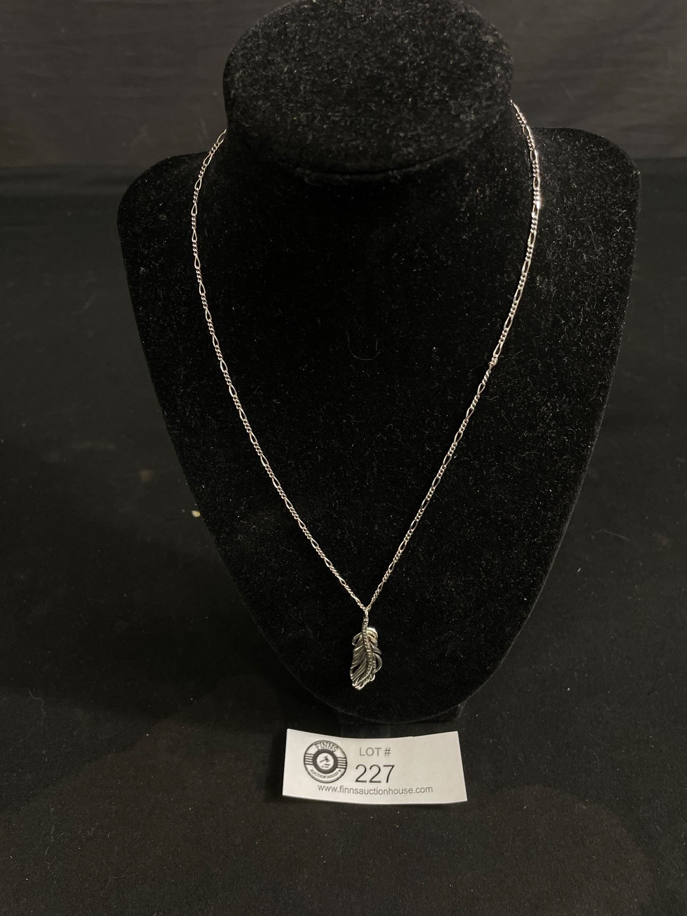 Sterling Silver Vintage Feather Pdt w/ Tiny Set Stones & Sterling Chain