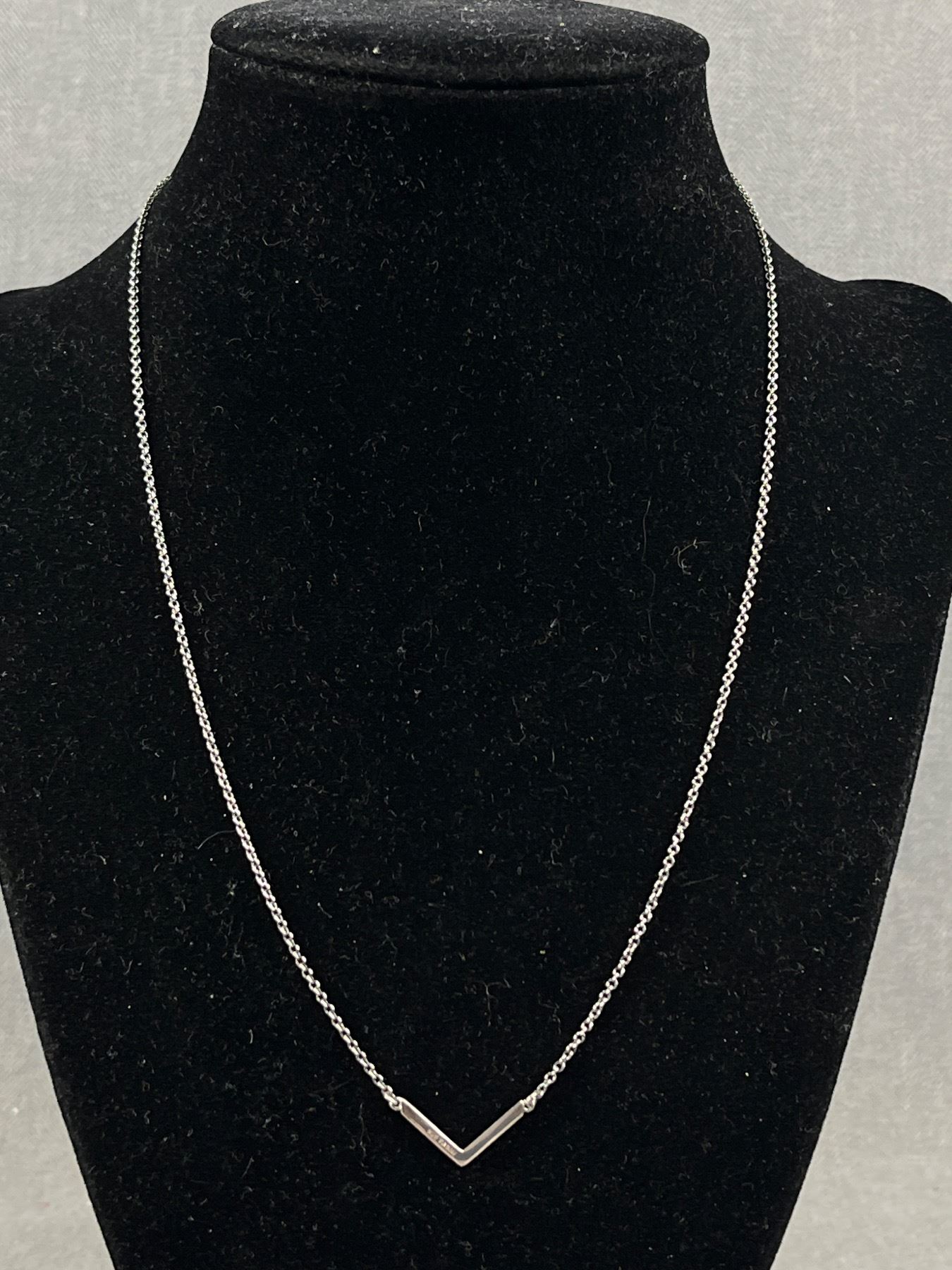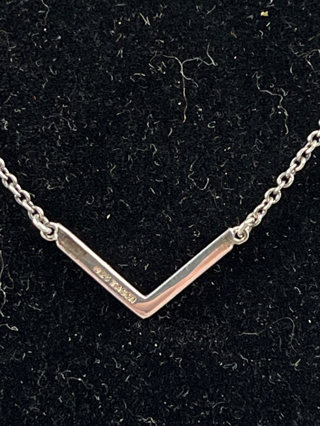 Sterling Silver w/ 17 Tiny Diamonds Necklace Marked 925 Tashi