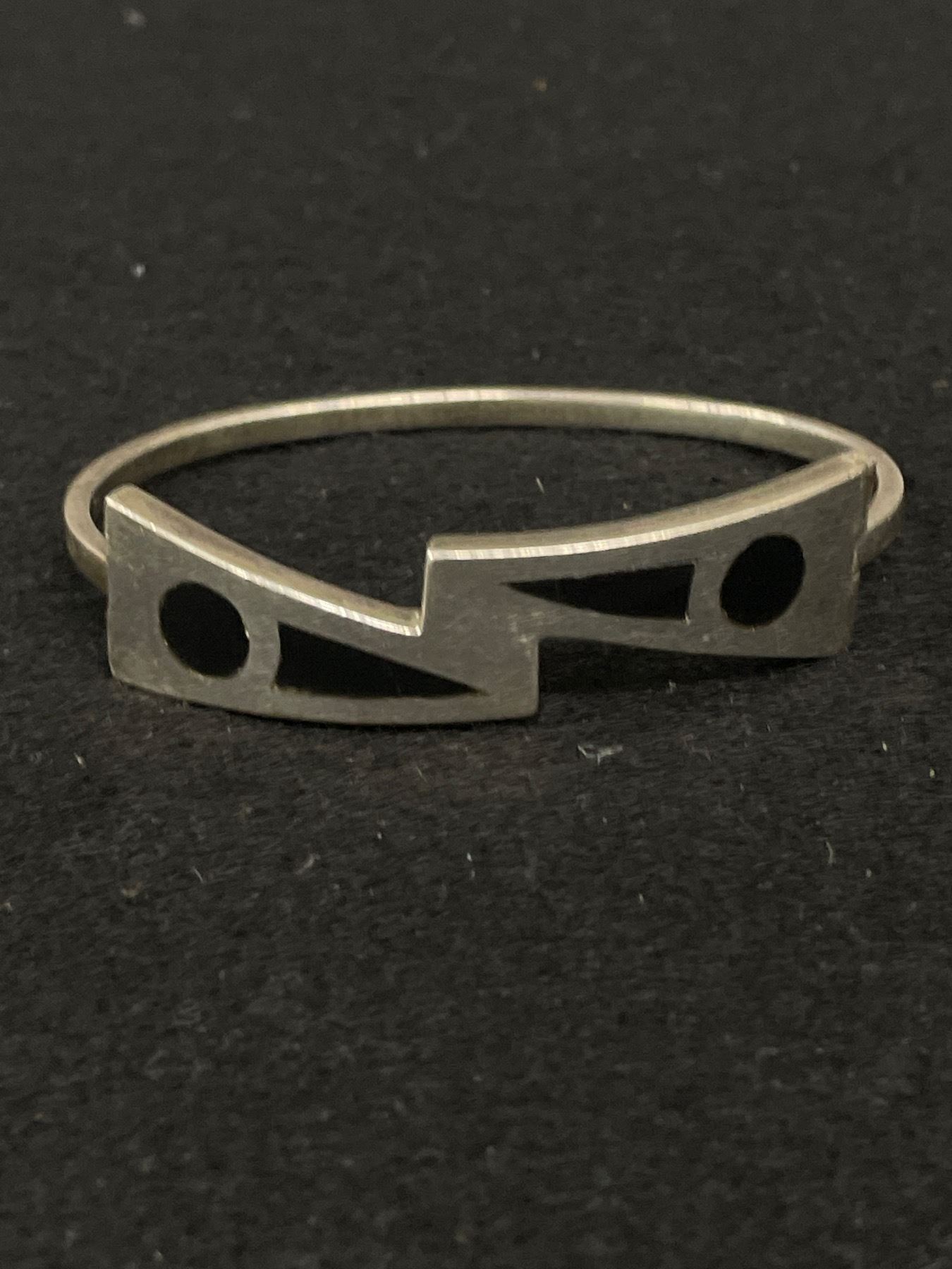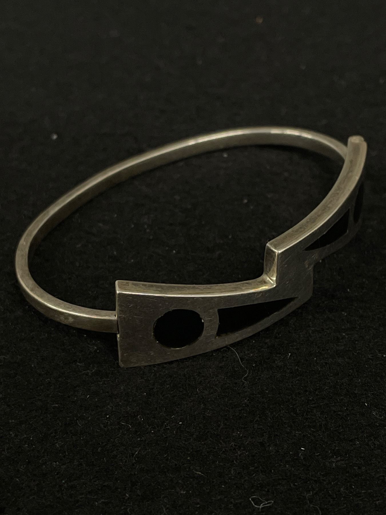 Sterling Silver w/ Black Onyx Inlay Hinged Bangle Tested and Marked 925