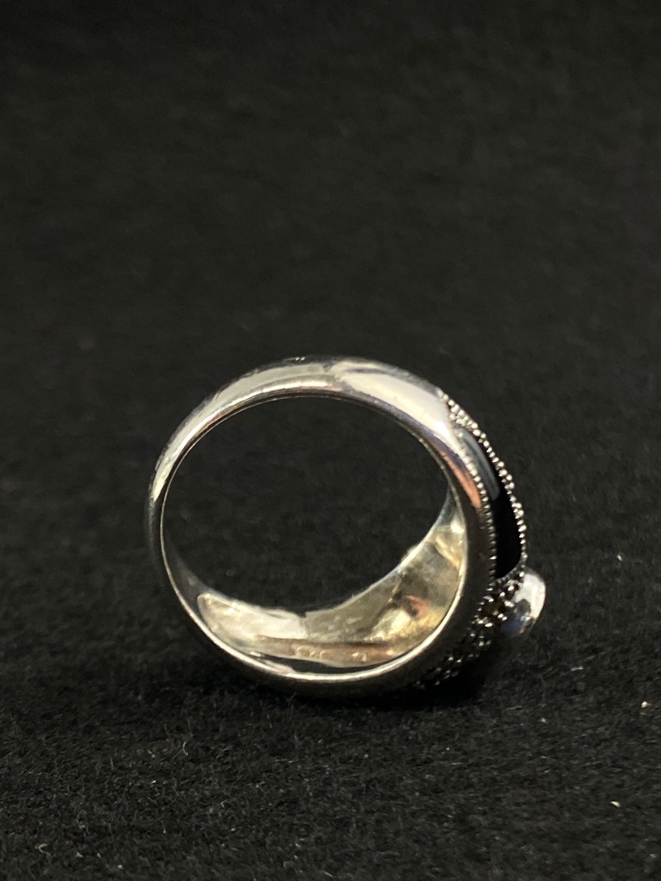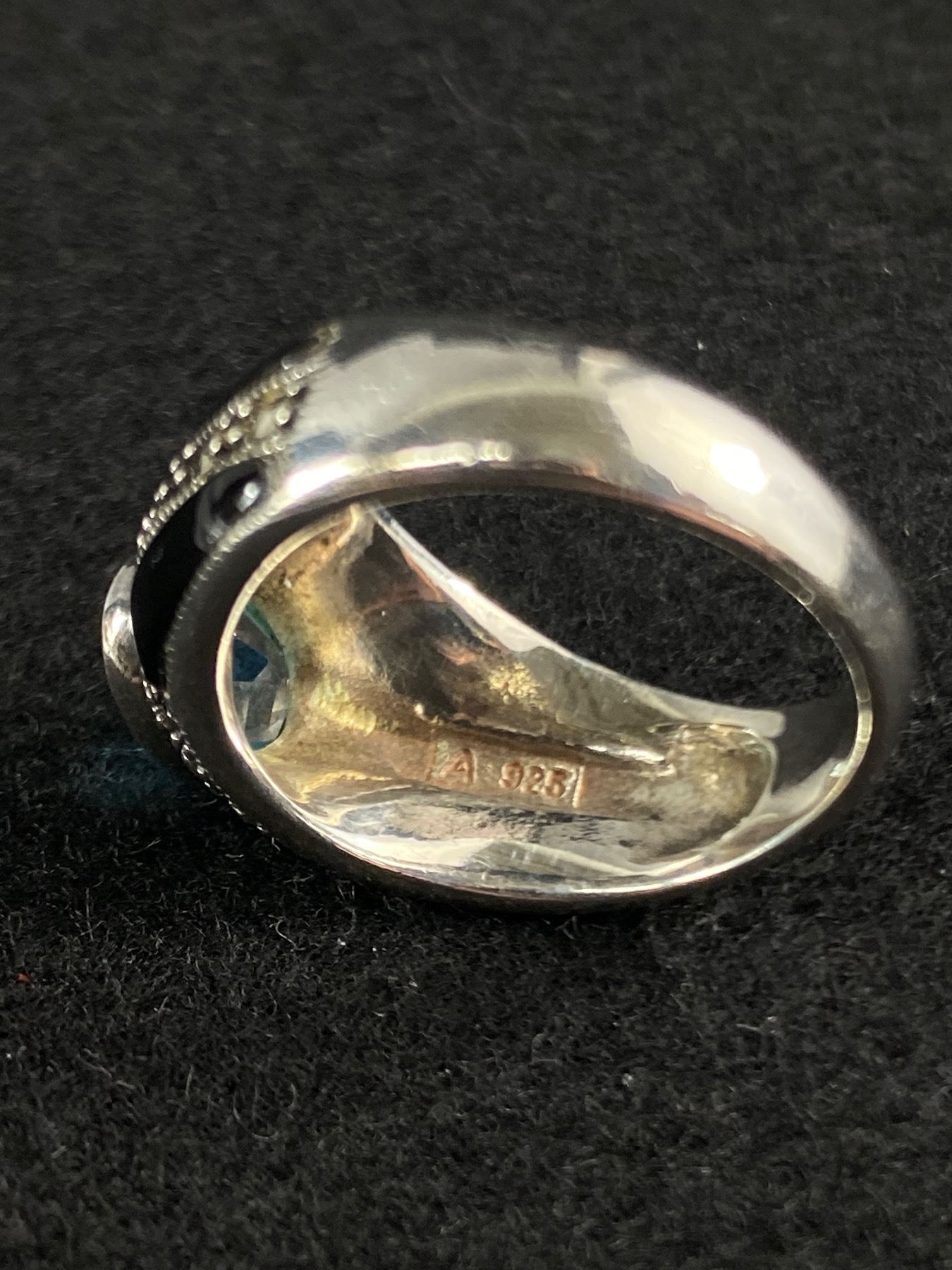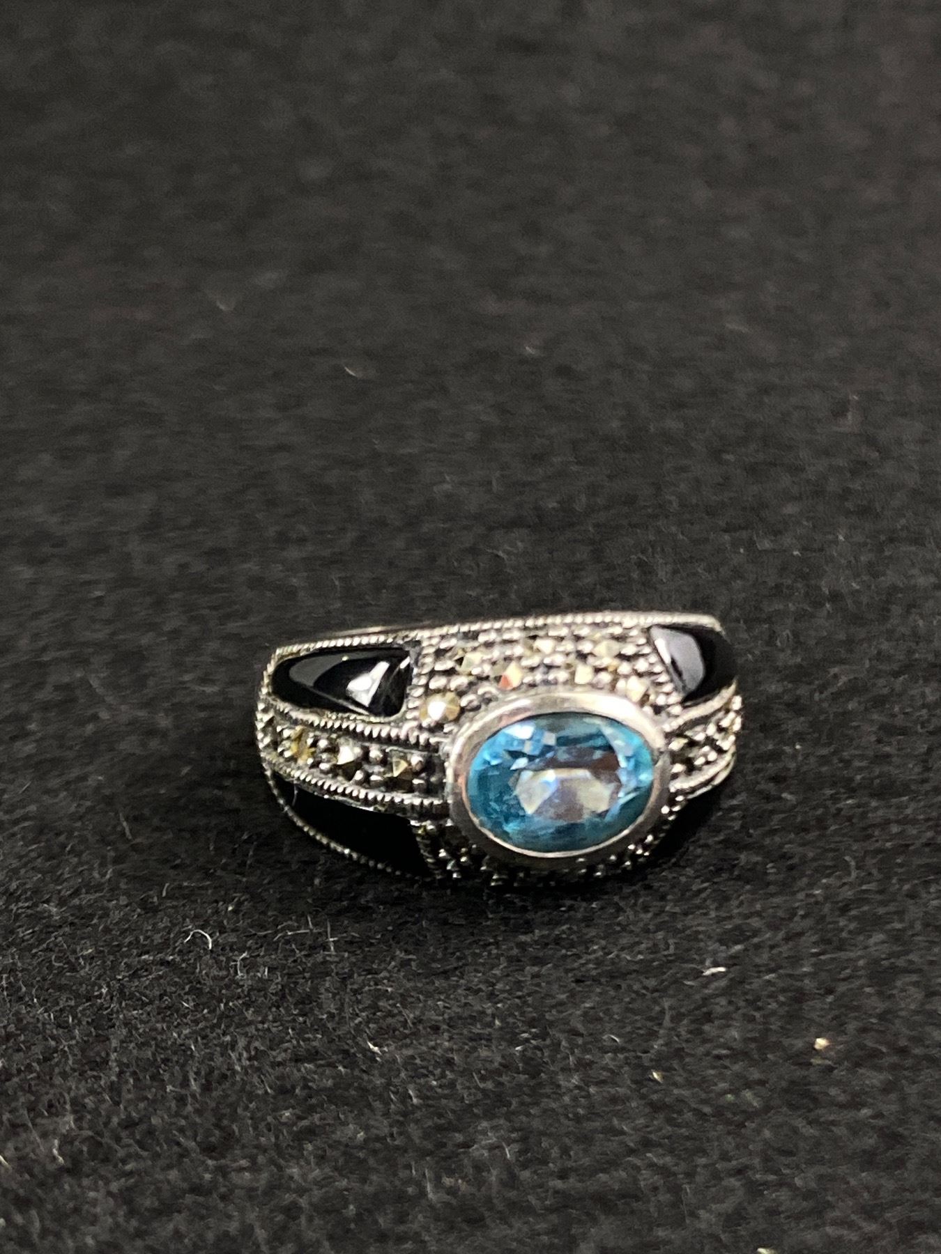 Sterling Silver w/ Blue Topaz + Markasite Stones Ladies Ring