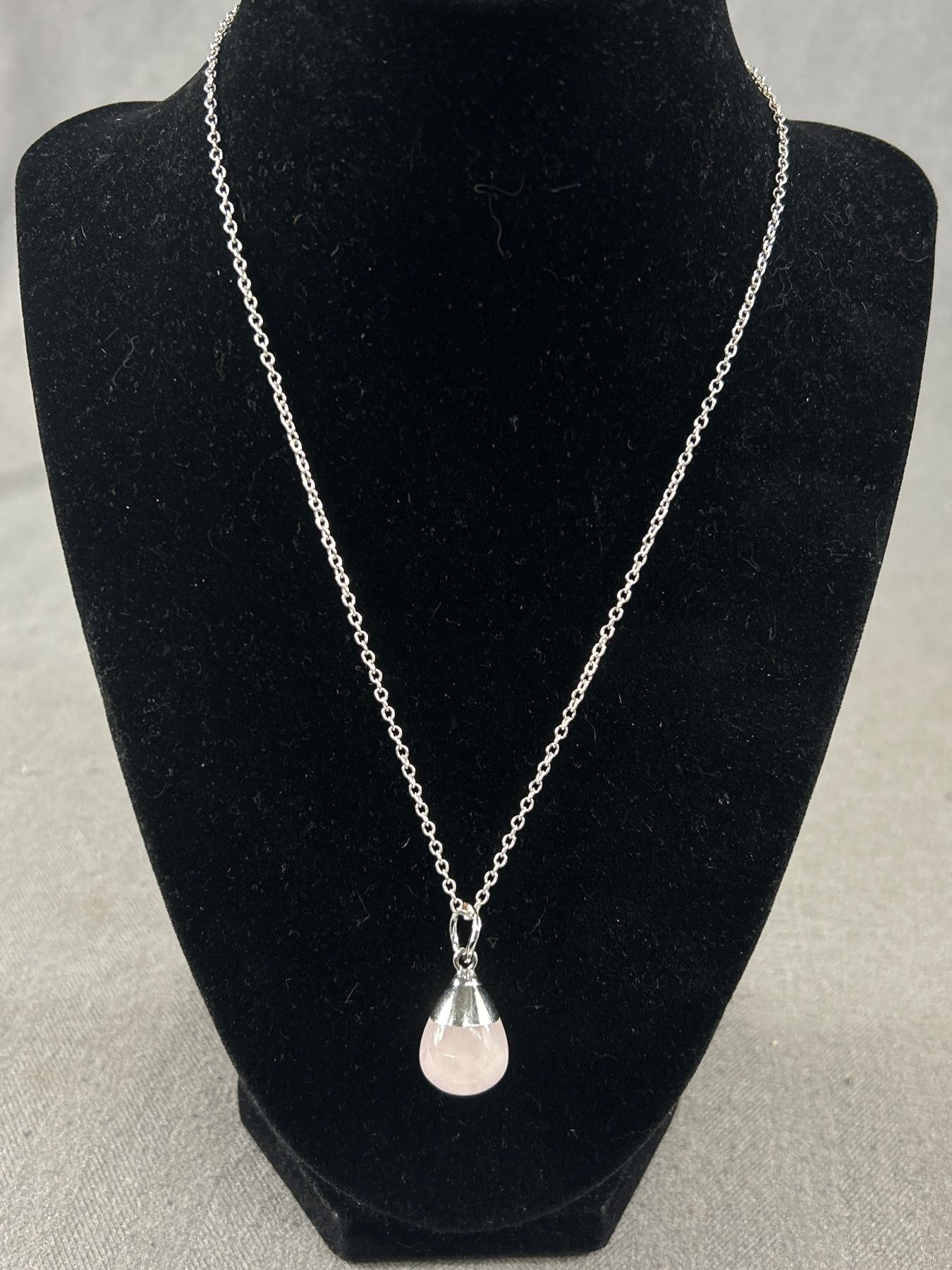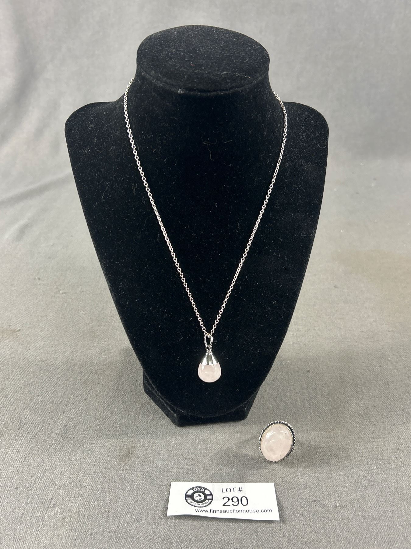 Sterling Silver w/ Rose Quartz Stone Ring + Pendant w/ Silver Plated Chain Necklace