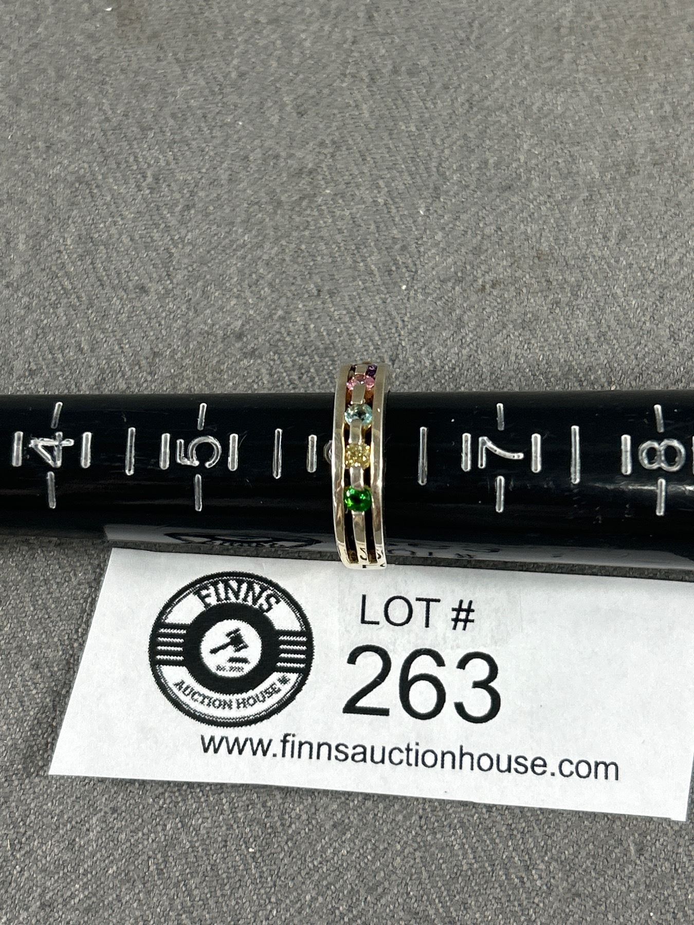 Sterling Silver with 5 Different Color Gem Stones, Execellent Condition Marked Silver A & F Size 6.5