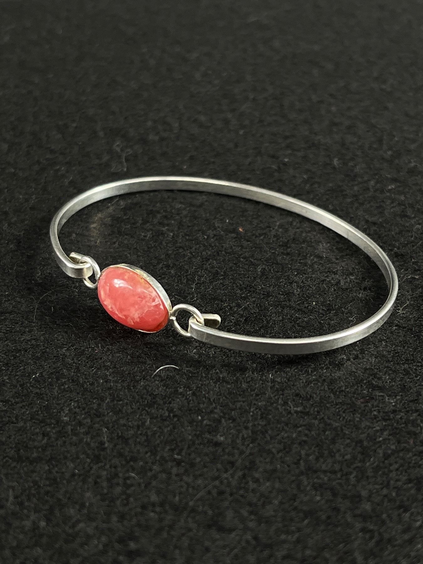 Sterling Silver with Red Rhodonite Stone Bangle Hallmarked
