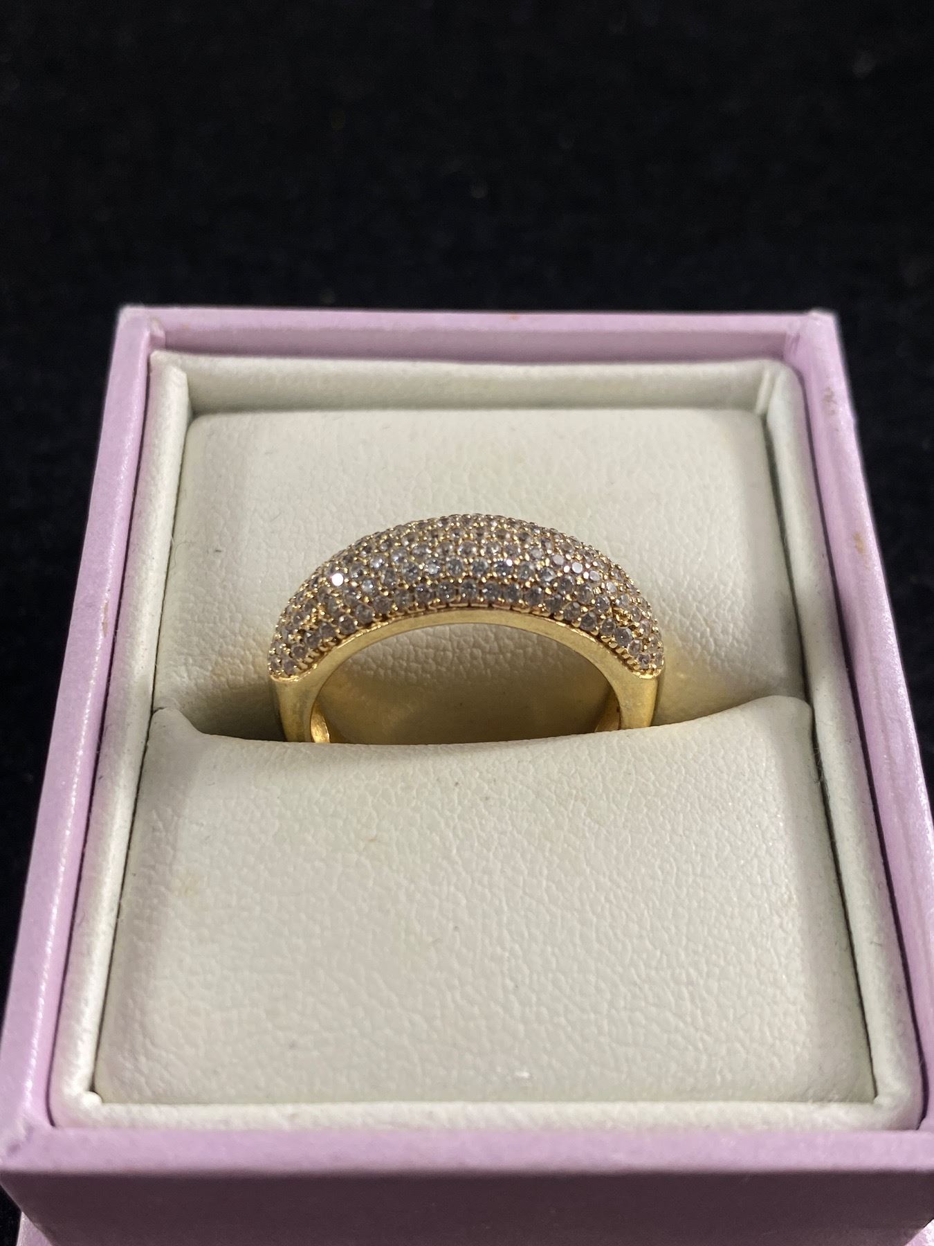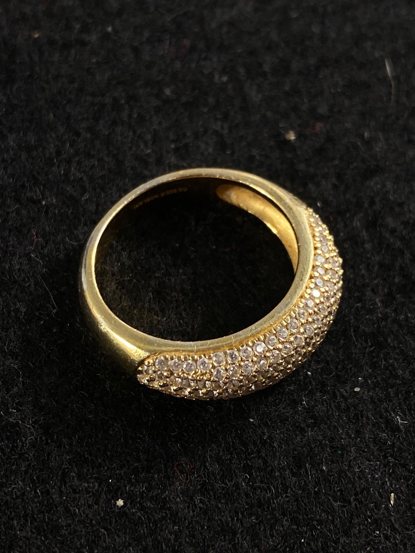 Sterling Vermeil Ring Domed 7 Row CZ Pave Signed 925 Noelani - 3.8 Grams - Size 6 - Tested