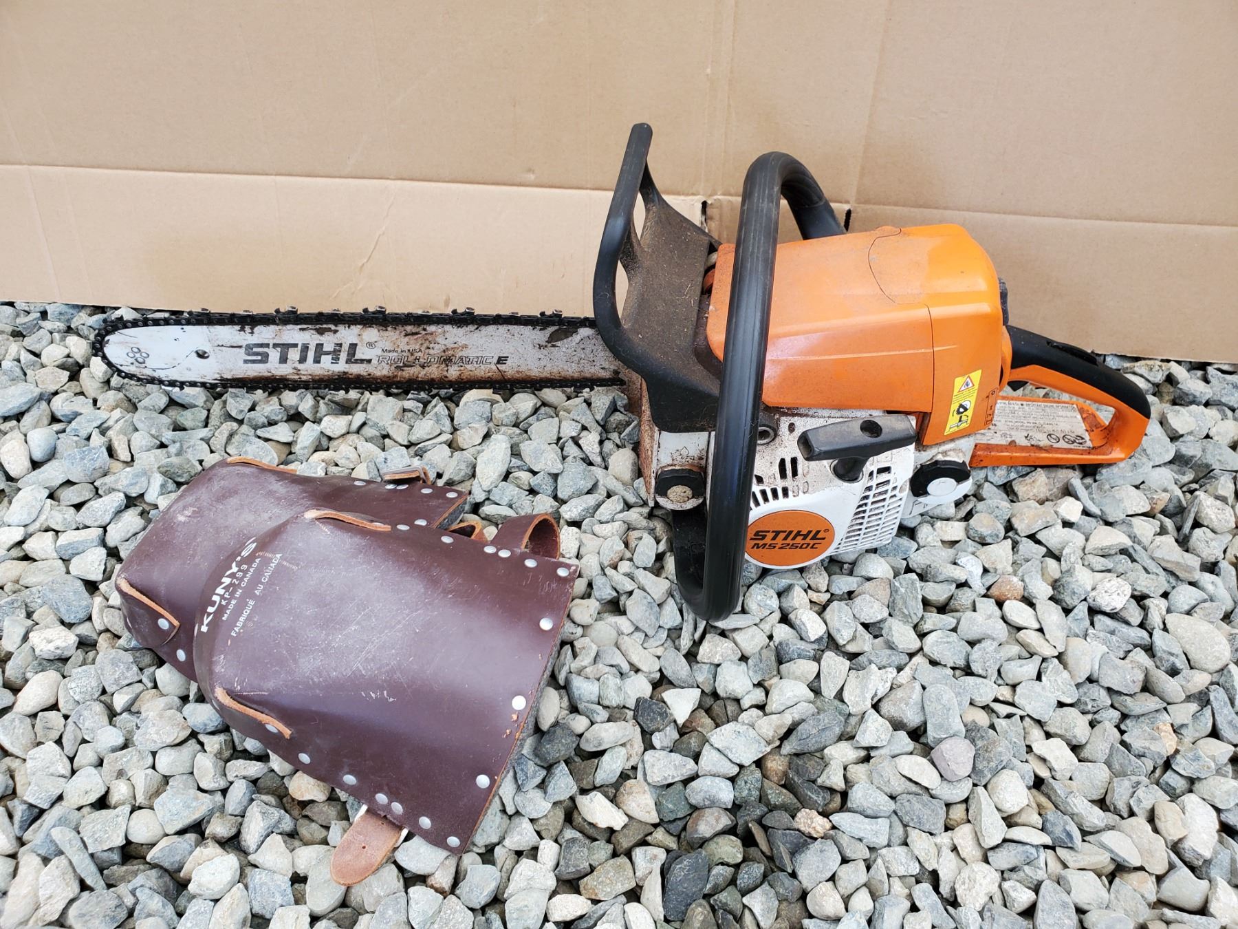 Stihl 250C Chain Saw & Knee Pads - 17% Buyer Fee. Payment Processed through Live Auction World ( Visa or Master Card ) pick up Saturday, or Tuesday