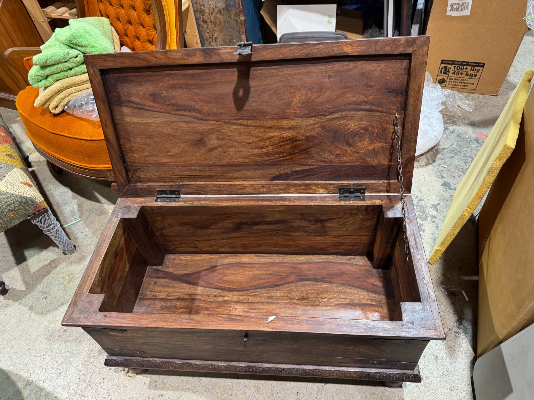 Storage chest measures 35 1/2 inches long 17 inches deep 18 inches tall