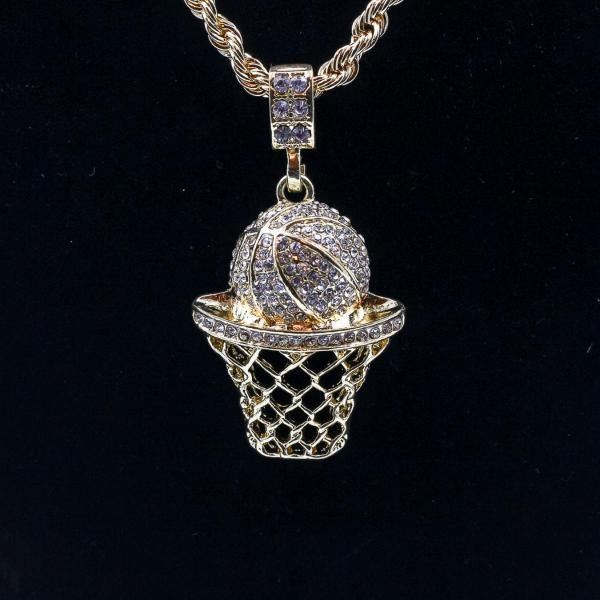 Awesome 14 Kt Gold Plated Basketball Hoop Pendant.This hoop pendant hangs from a 14 Kt Gold Plated 4mm 24 " rope chain. Looks like solid gold without the solid gold price.Approx 34.9 total gram wt. The chain and the pendant come together so really 2 items included together for just one price.Ready to wear now or anytime