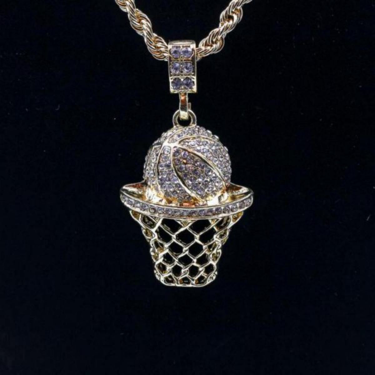 Awesome 14 Kt Gold Plated Basketball Hoop Pendant.This hoop pendant hangs from a 14 Kt Gold Plated 4mm 24 " rope chain. Looks like solid gold without the solid gold price.Approx 34.9 total gram wt. The chain and the pendant come together so really 2 items included together for just one price.Ready to wear now or anytime