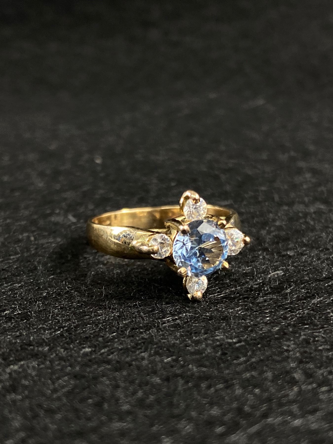 Stunning 10k Yellow Gold With Blue Topaz Ring. With 4 Small Diamonds. Size 7 3.53 gr