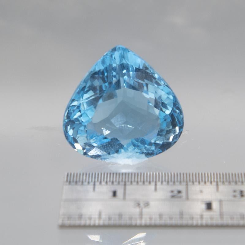 Stunning 34.78 Ct VVS 1 Certified Swiss Blue Topaz.This natural mined from the earth topaz is a fine eye clean trillion cut.measuring 19.89 x 20.38 x 12.05 mm. Origin : Brazil. Perfect For A Pendant.